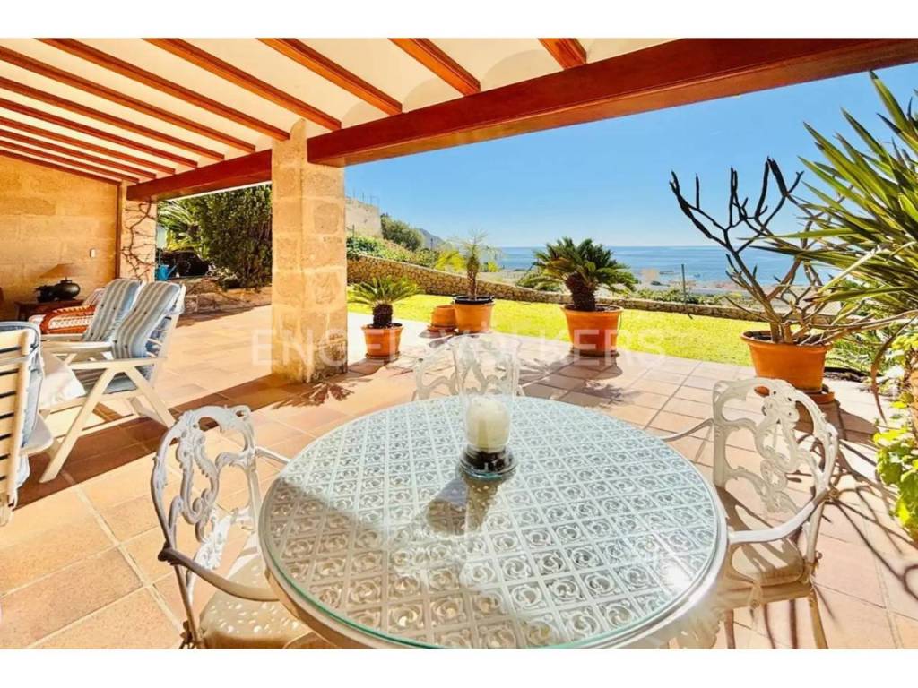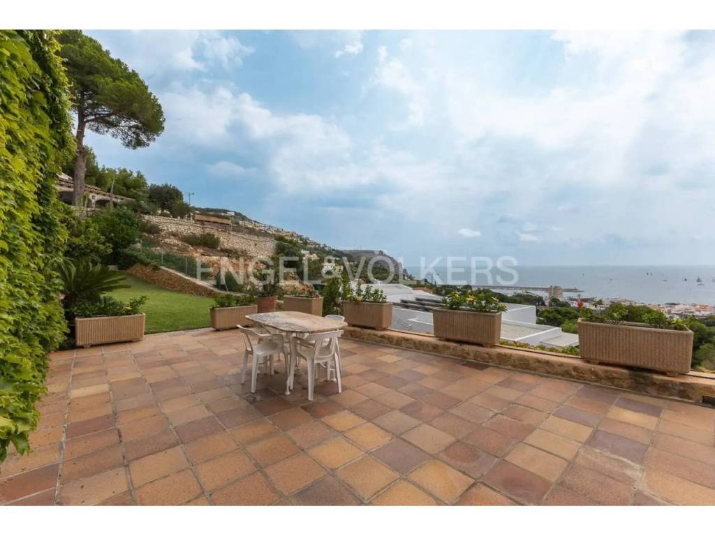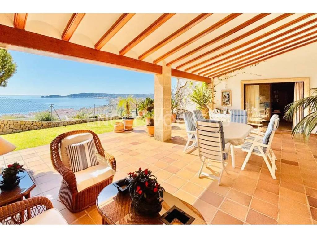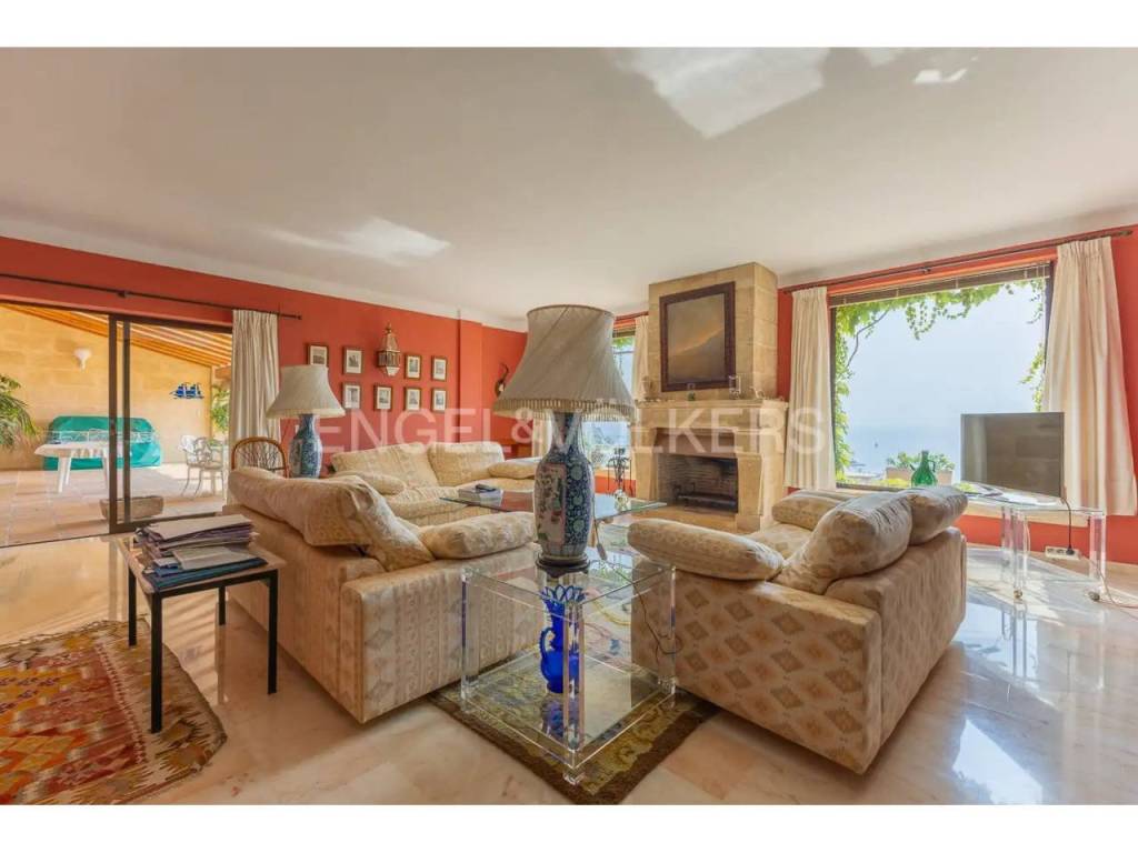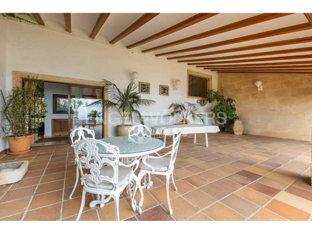El interior combina un estilo clásico con materiales de alta calidad, como suelos de mármol portugués, y cuenta con una acogedora zona de salón con chimenea y vistas al Mediterráneo. La casa dispone además de varias terrazas, pensadas para aprovechar tanto el verano como los meses más suaves.