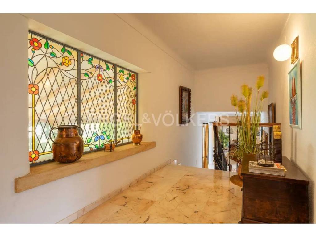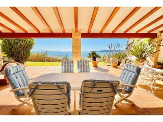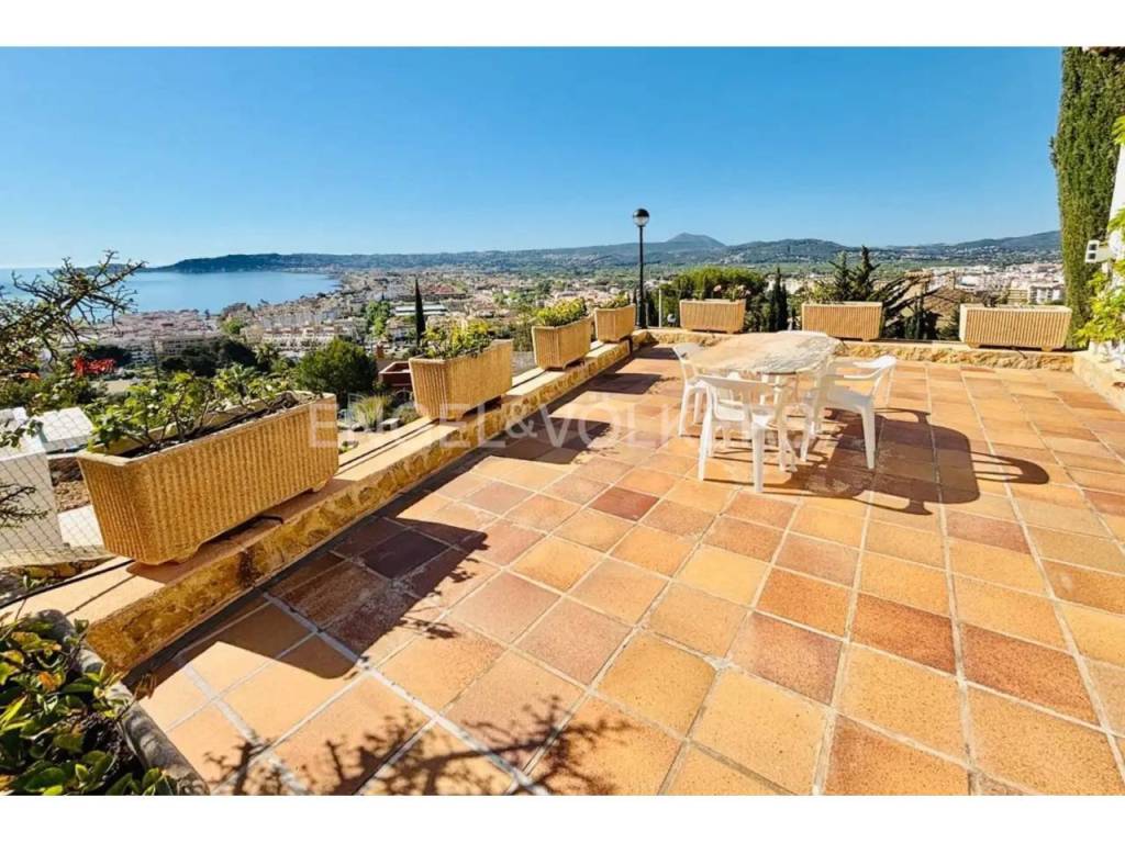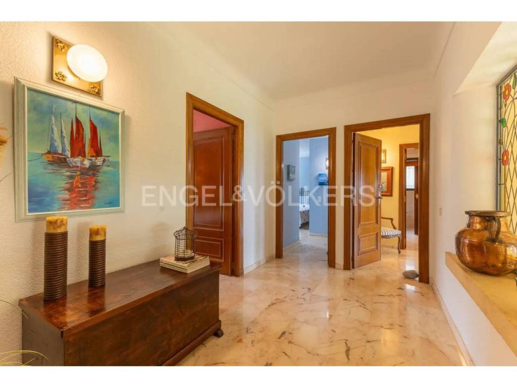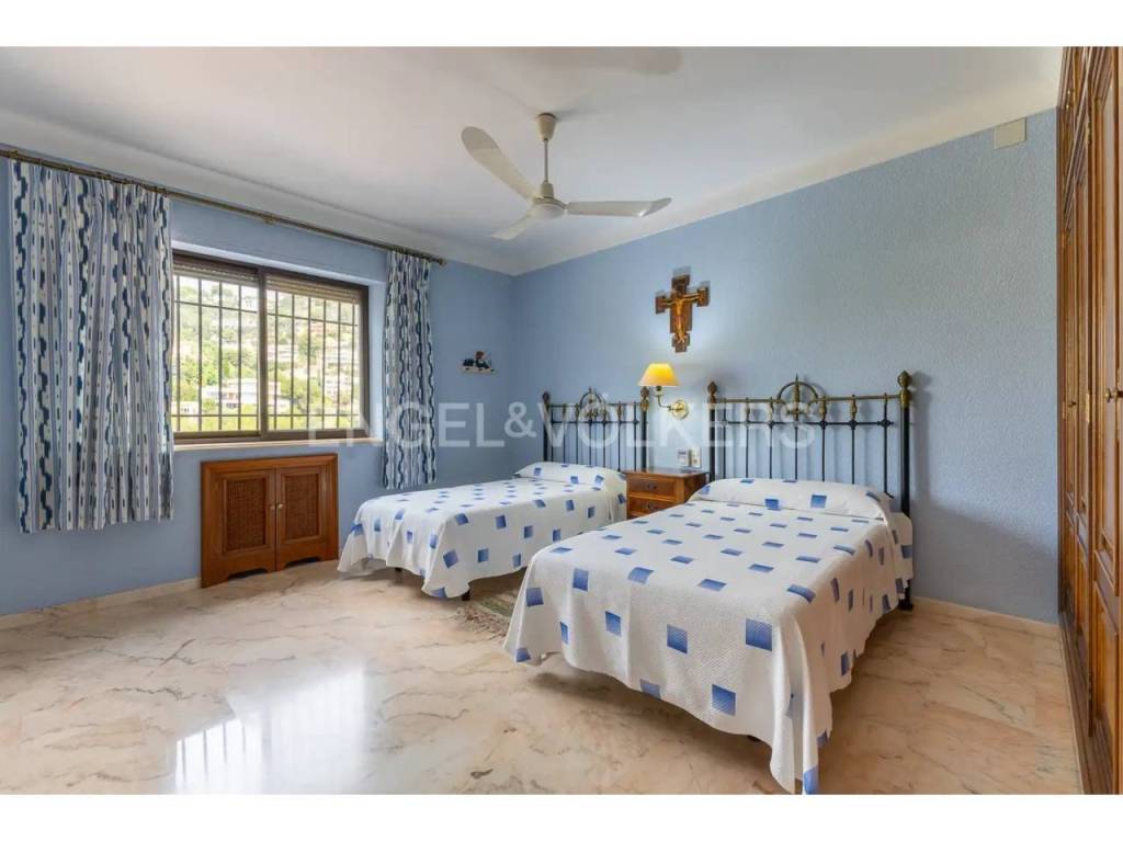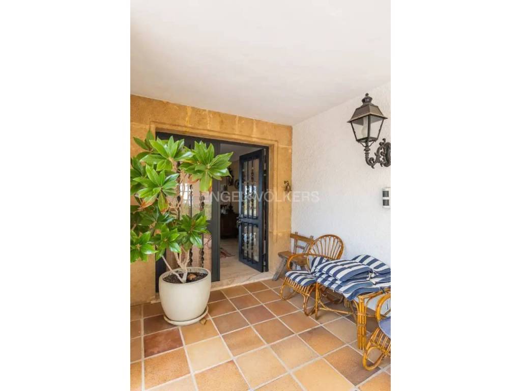 El interior combina un estilo clásico con materiales de alta calidad, como suelos de mármol portugués, y cuenta con una acogedora zona de salón con chimenea y vistas al Mediterráneo. La casa dispone además de varias terrazas, pensadas para aprovechar tanto el verano como los meses más suaves.