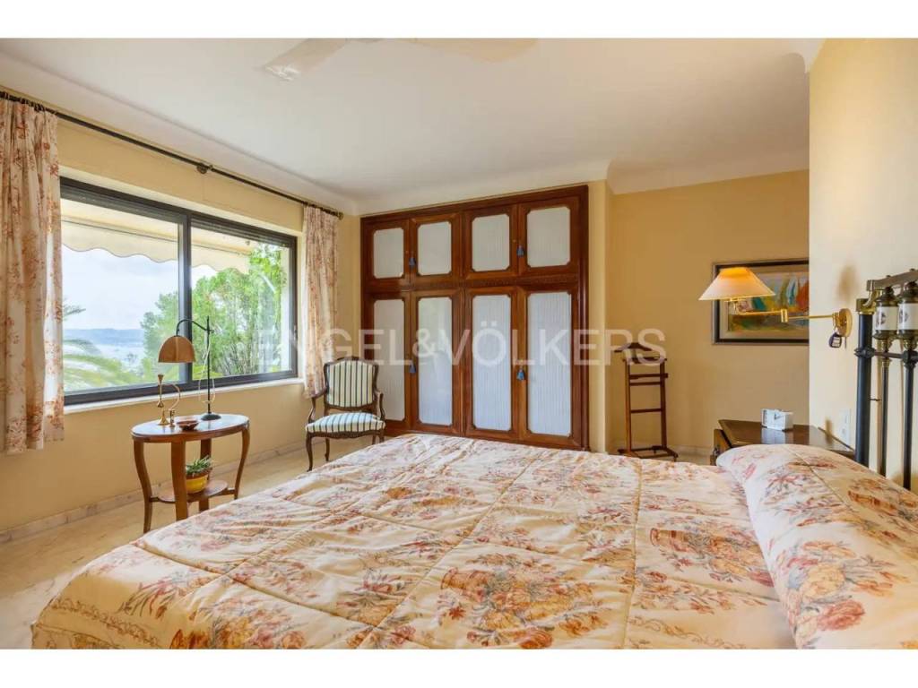 Gracias a su posición elevada, la vivienda disfruta de una de las mejores panorámicas de la bahía, permitiendo vistas abiertas desde varias estancias. Su entorno residencial está formado por propiedades de alto nivel y calles tranquilas que garantizan privacidad y seguridad.