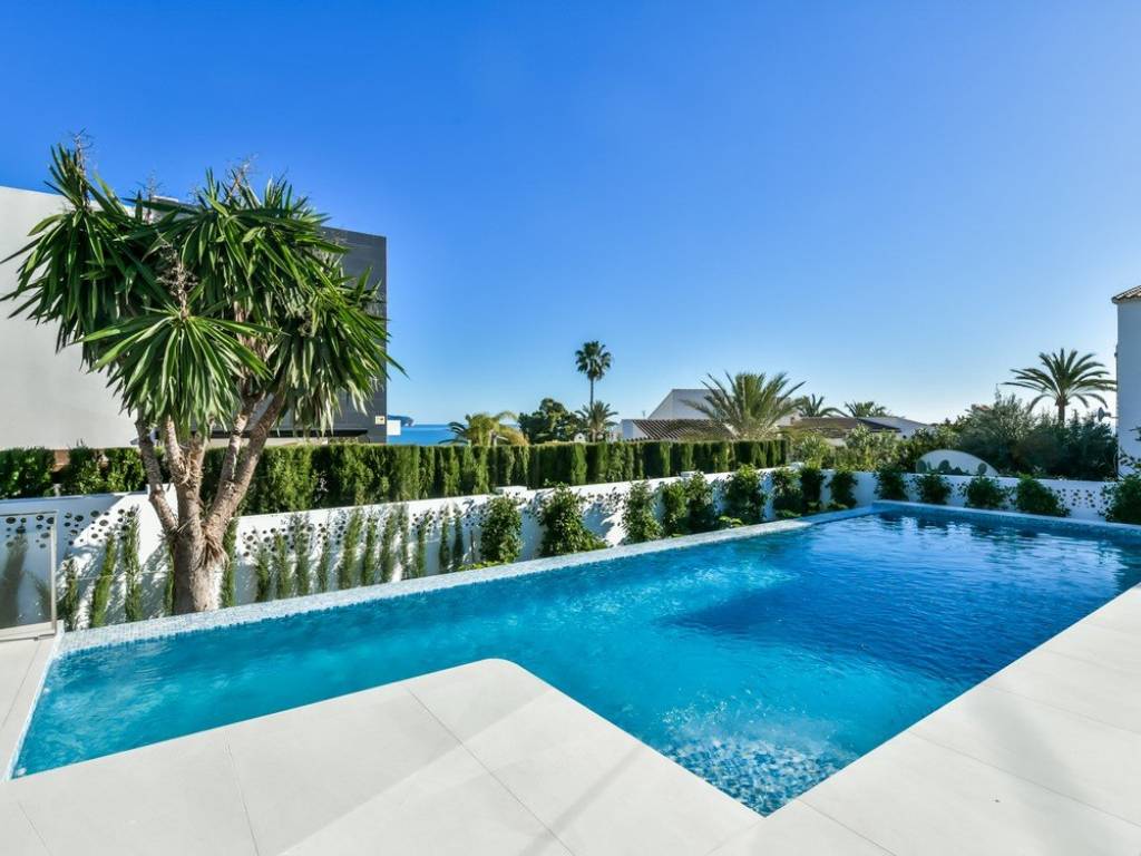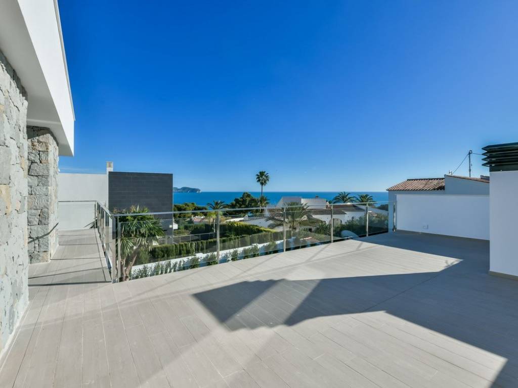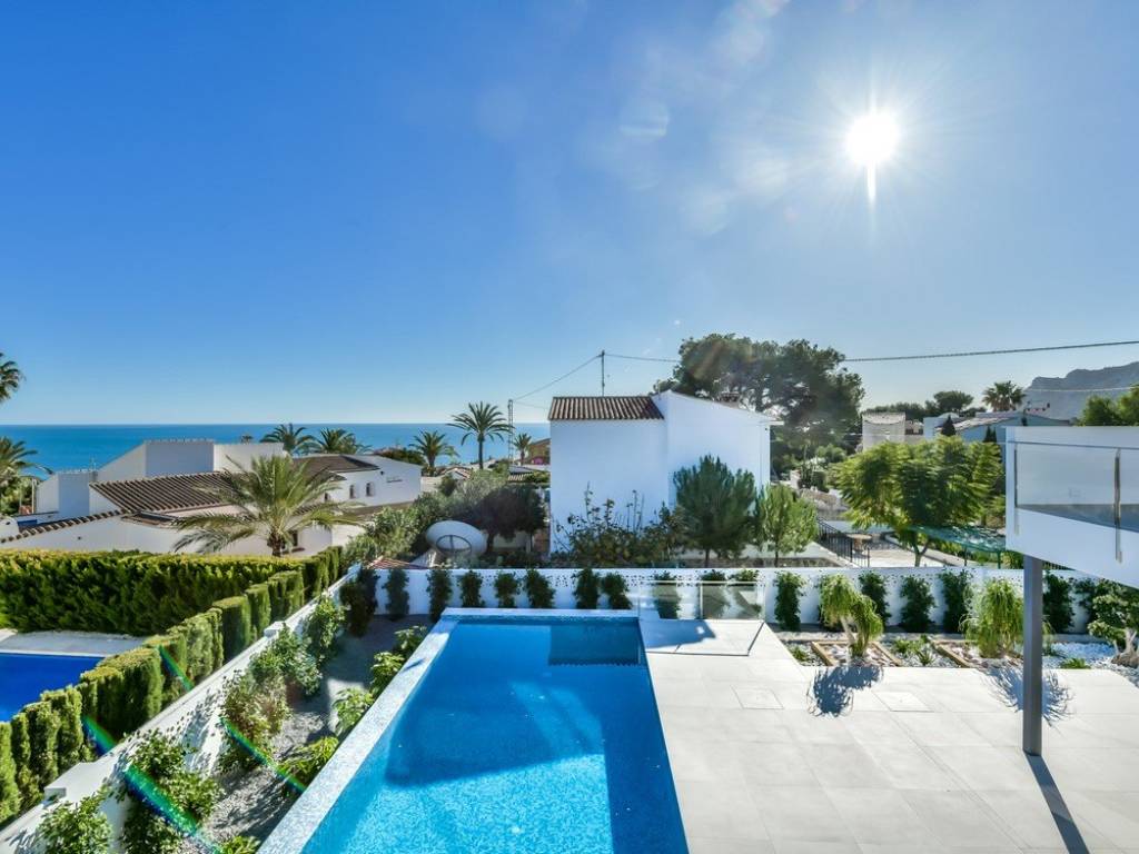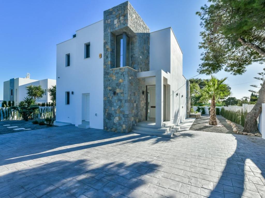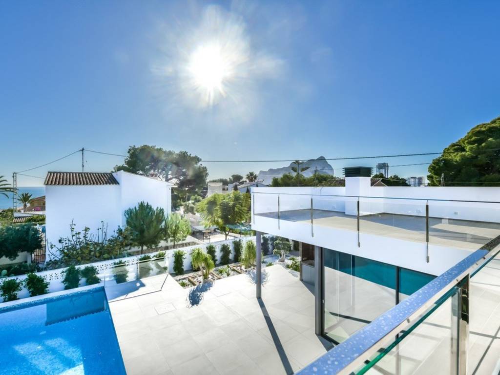 Luxury new build villa for sale in Calpe next to the beach Located just 150 metres from the sea this luxurious villa of new construction boasts an exclusive modern design and sea views.The villa is located in the urbanisation of Calaga in the coastal area of Calpe, an area with shopping facilities and restaurants in walking distance property as well as the two coves of Cala Calaga and Cala del Mallorqui reached in less than 500 metres.Property features:New villa with high-quality finishesSea views and southerly exposureQuiet residential area but still close to servicesFloor heating and air-conditionedTop location next to the beachAbout this property:Located next to the sea and two attractive coves on the coast of Calpe this new build villa offers superb and luxurious accommodation.The villa is situated within the area of Calaga, this is the coastal part of Calpe neighbouring the sandy beach of Playa la Fossa. Seafront bars and restaurants in the beach area and on the coastal road are all in easy walking distance from the villa.The villa's accommodation is arranged over ground and first floors with an internal staircase connecting both levels.Ground floor (120.30 m):Entrance porch to an entrance hallway with storage cupboard, inner hallway with toilet, stairwell and storeroom, L-shaped open plan lounge, dining room and kitchen of 48.30 square metres with double aspect doors communicating with veranda, pergola terrace and pool terrace.Also, on the ground floor, a utility room and a 17.65 square metre bedroom suite with integrated wardrobes, connecting bathroom with shower and access to the pool area through glass sliding doors.First floor (77.40 m):Hallway with stairwell and guest bathroom with shower, two guest bedrooms with integrated wardrobes and a 22.05 square metre bedroom suite with connecting bathroom and dressing room. To the front of the building a balcony terrace with views over the pool area towards the sea.Outside:Covered barbecue terrace adjacent to the pool, 64 square metres private pool, landscaped gardens and an 87 square metre parking bay."An impressive new build villa for sale in Calpe ideally situated next to the sea and walking distance to all services."
