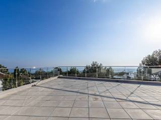 The house features five spacious bedrooms, each with its own en-suite bathroom, providing an exceptional level of privacy and comfort. The interior is fully furnished and equipped with air conditioning, ensuring a pleasant environment throughout the year. The kitchen is fully equipped and includes a laundry room and a service room, facilitating household management.