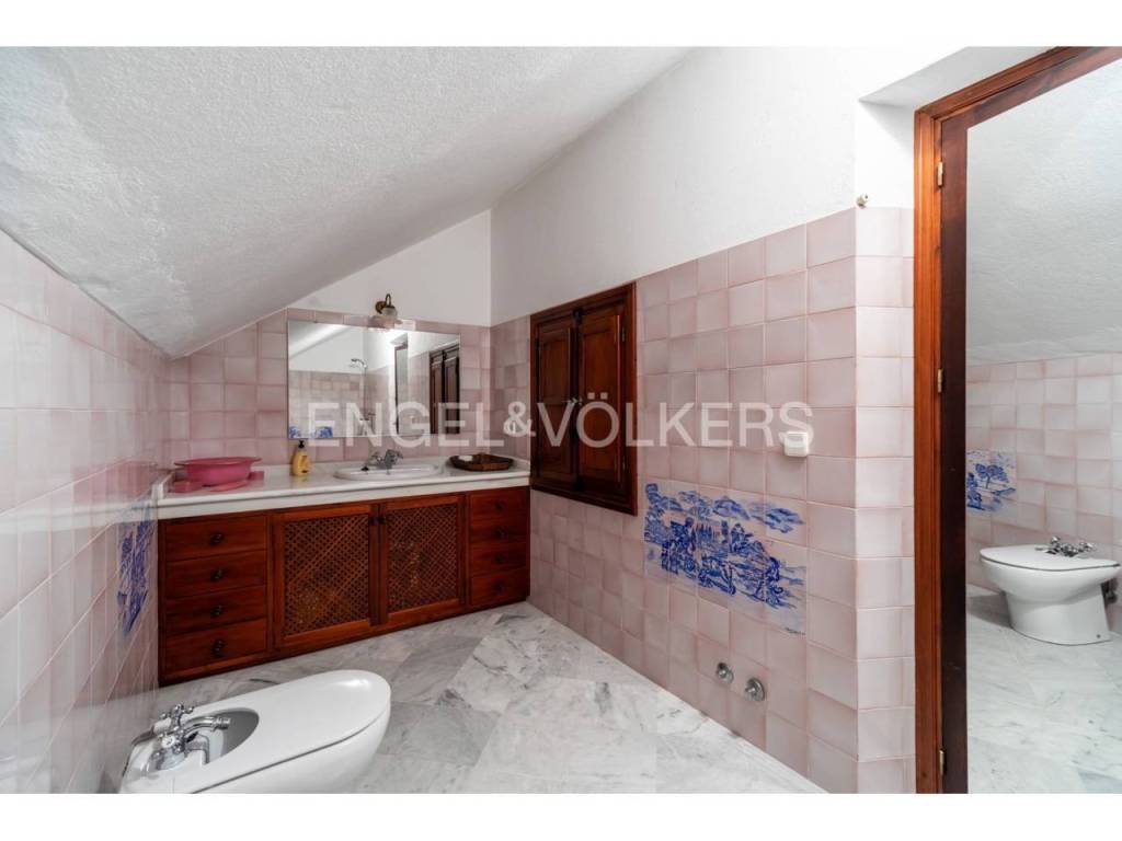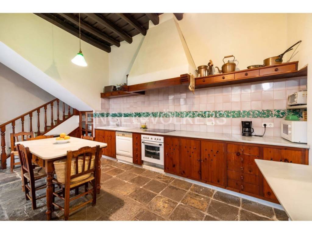 Desde la entrada principal y a través de su bonito zaguán, accedemos al patio ajardinado de excelentes dimensiones comunicado con las estancias de la planta baja. En ésta, nos encontramos el salón comedor, comunicado a su vez con otro pequeño patio, un despacho, la sala de estar, la lavandería y la amplia cocina office con despensa . Desde aquí y para no tener que salir al patio, subimos a la primera planta a través de una pequeña y coqueta escalera.