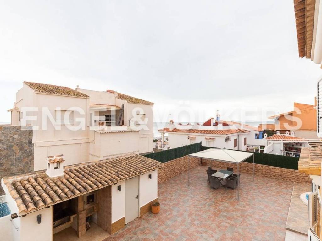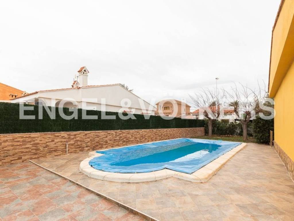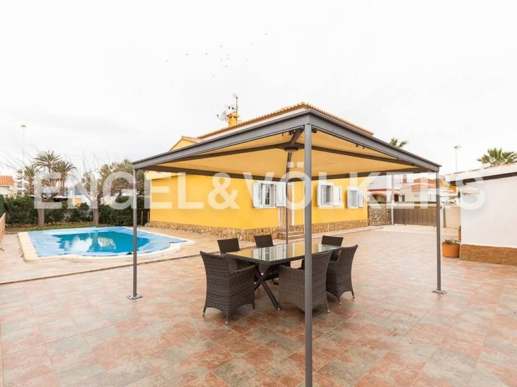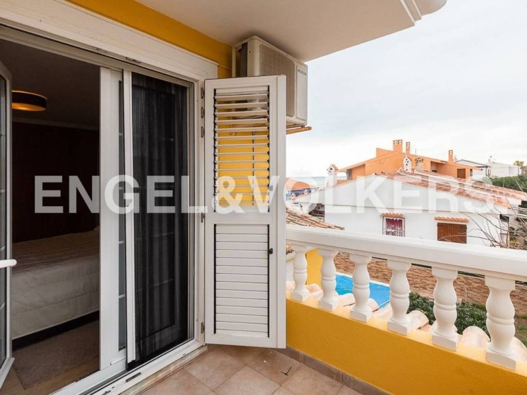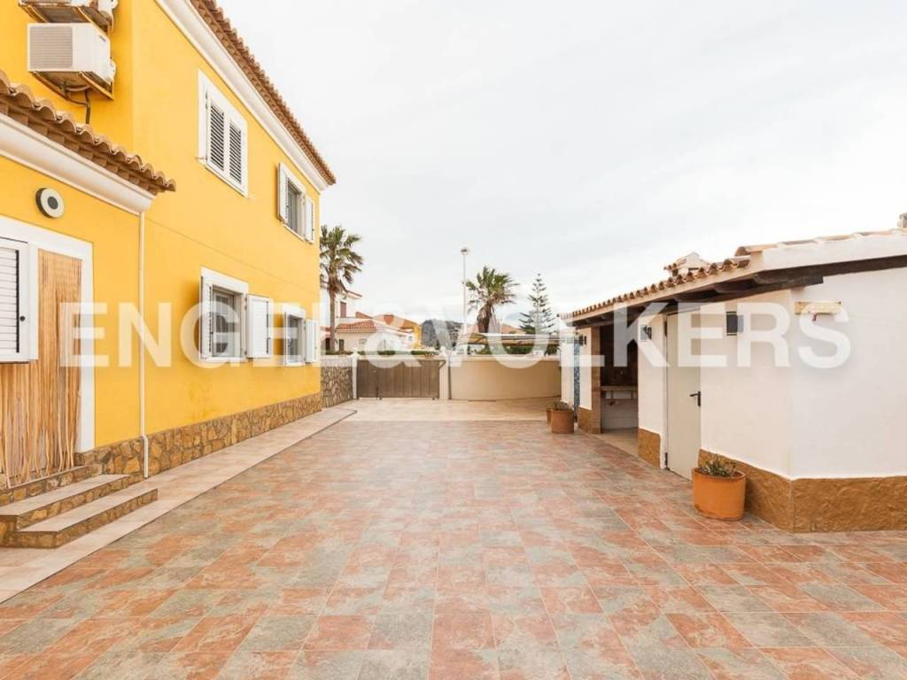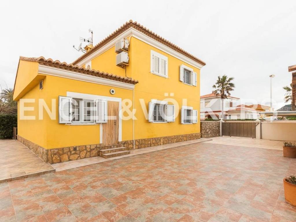 Te presentamos esta hermosa y exclusiva villa en la playa del Marenyet de Cullera. Tiene una parcela de 659 metros, ubicada prácticamente en primera línea de mar, con una orientación espectacular ya que la vivienda es totalmente exterior y esquinera. La villa tiene 250 m2, distribuidos en planta baja y primer piso. Accedemos por la puerta principal a un amplio y hermoso salón con chimenea, un dormitorio doble, un baño y una amplia cocina con lavadero y con acceso al garaje cerrado al fondo de la parcela. Subimos al primer piso a través de una escalera grande y hermosa con suelo de mármol y baranda de acero inoxidable. En esta planta encontramos 4 habitaciones dobles (2 de ellas con vistas al mar y las otras 2 con acceso a terraza) y un amplio baño. Todas las habitaciones tienen radiadores y aire acondicionado por splits y armarios empotrados. Es una casa elegante y muy señorial, con techos altos, habitaciones amplias y luminosas. La carpintería exterior es de aluminio blanco de doble acristalamiento con mosquiteras. En el exterior podemos disfrutar de una gran piscina con planta de tratamiento, el jardín, una terraza con cenador, barbacoa, horno de leña, trastero y zona de aparcamiento. Ideal para vivir todo el año. Zona tranquila muy cerca de Cullera y a tan solo 5 minutos de la zona comercial.