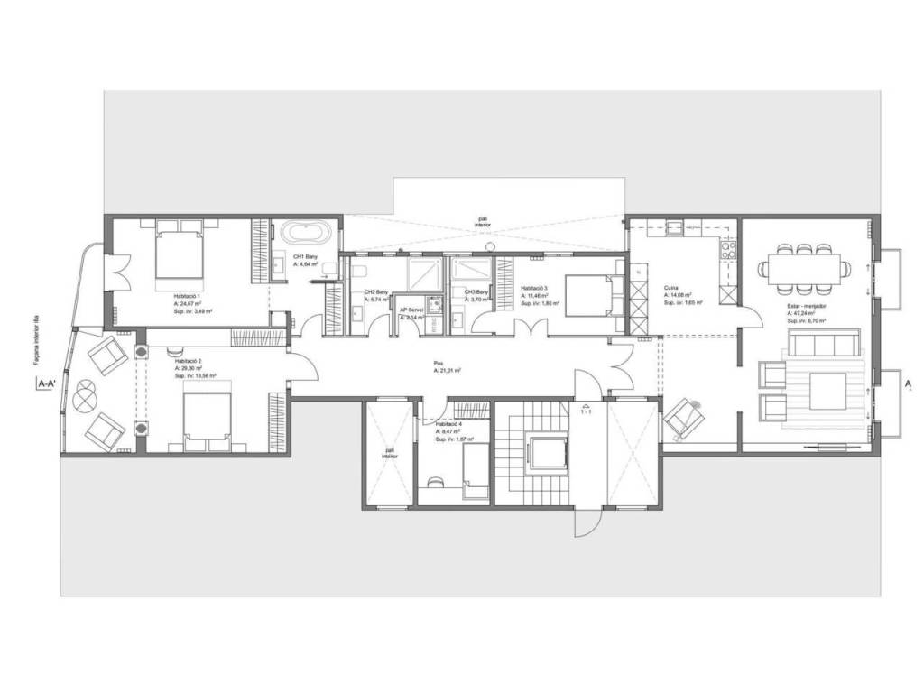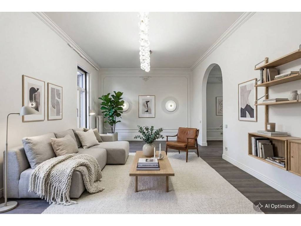 La sala de estar, estratégicamente ubicada hacia la calle, invita a la abundancia de luz natural, convirtiéndola en un espacio cálido y acogedor. Dos balcones fuera del comedor y la sala de estar mejoran aún más la conexión con el exterior, ofreciendo un lugar ideal para cenar al aire libre o simplemente disfrutar de las vistas urbanas.