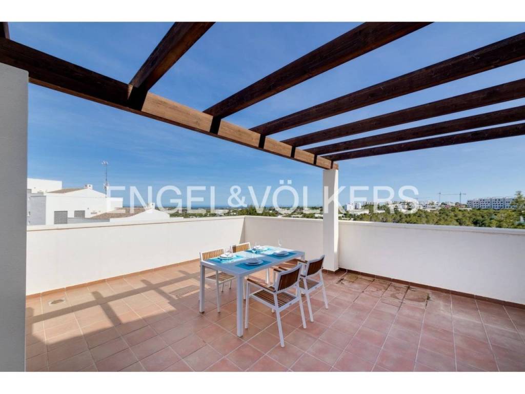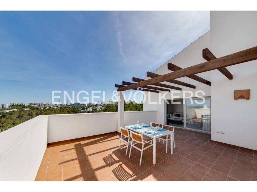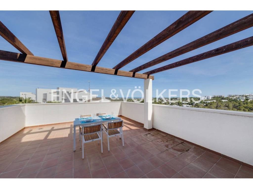 Este bonito apartamento tipo ático del año 2010, pertenece a la Comunidad Encina y tiene un total de aprox. 96m2 construidos, distribuidos en dos dormitorios dobles con armarios empotrados, dos baños completos, uno de ellos en suite, salón comedor con acceso a la terraza descubierta de aprox. 40m2, y cocina independiente totalmente amueblada y equipada con galería para usos. Además, la vivienda dispone de una plaza de aparcamiento asignada dentro de la comunidad y un trastero privado en la parte superior del edificio. La propiedad se ubica dentro de una comunidad consolidada con piscina comunitaria dentro del resort y tiene unas vistas espectaculares. Tiene orientación sureste y además es una propiedad ideal tanto para inversión de alquiler, como para vacaciones o residencia habitual, ya que consta de todos los servicios posibles muy cerca. Dentro del resort está uno de los campos de golf de 18 hoyos de más prestigio, varios restaurantes, pistas de tenis y pádel, gimnasio, etc. Además, los propietarios tienen prioridad en el acceso al beach club ubicado en la playa grande de Campoamor, a tan solo 7 km de distancia del resort. La vivienda se vende completamente amueblada y equipada, dispone de aire acondicionado por conductos, sistema de calefacción, fibra óptica, persianas motorizadas, etc.
