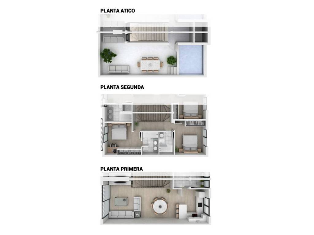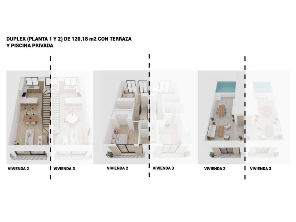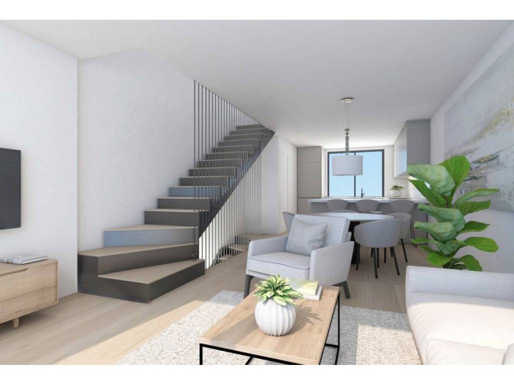 New construction with expected completion date for summer 2025. This 120 sqm duplex is distributed over two floors. It has three bedrooms, three bathrooms, and an open kitchen-dining-living room on the first floor. The roof terrace is approximately 21 sqm and includes a 7 sqm pool.