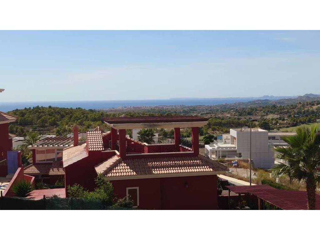 Se vende chalet ubicado en Urbanización muy cerca de campo de golf "Los Almendros" y a escasos 2 km de la playa/Terra Mitica y centro comercial. Dispone de vistas despejadas al mar, montaña y resto de la urbanización.