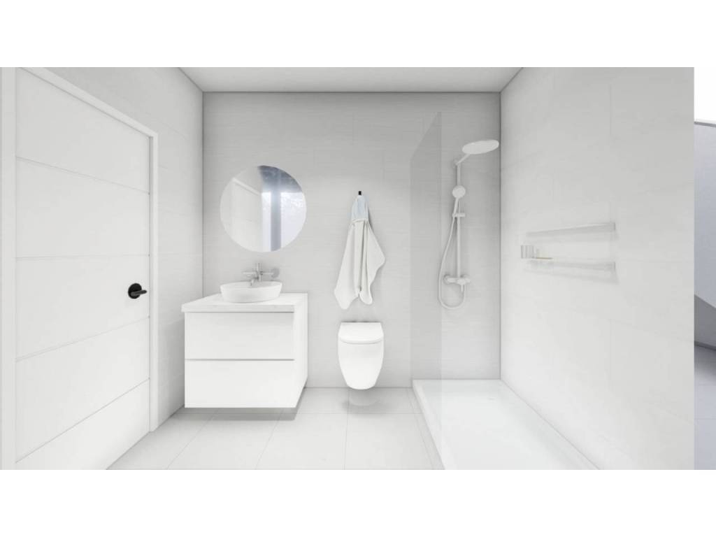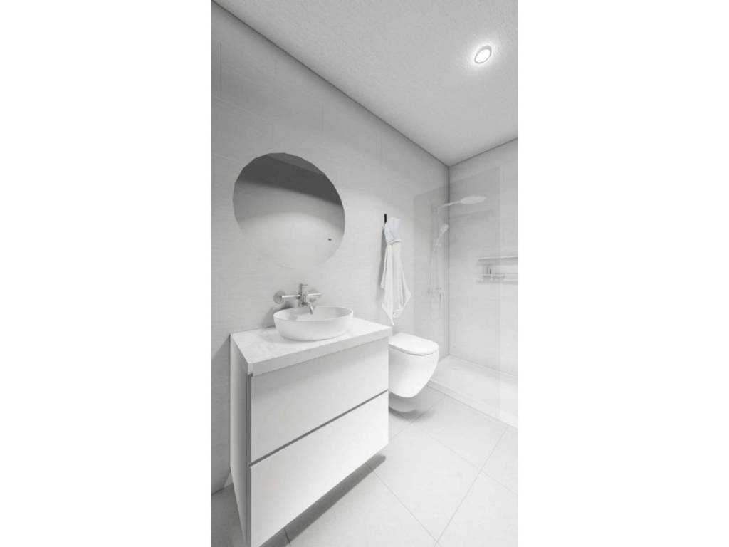 Fully fitted bathrooms with suspended vanity unit and suspended toilet, mirror with light, shower with "rain effect" and shower screens.