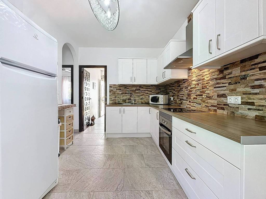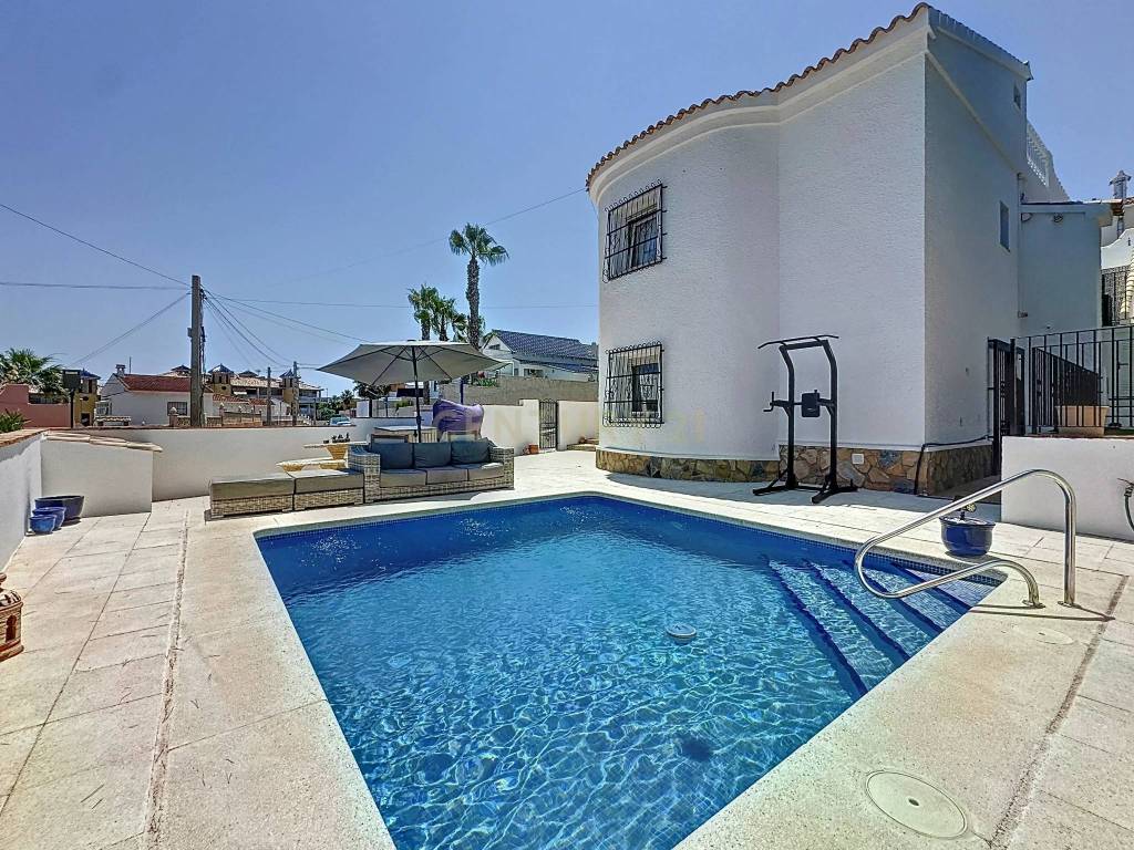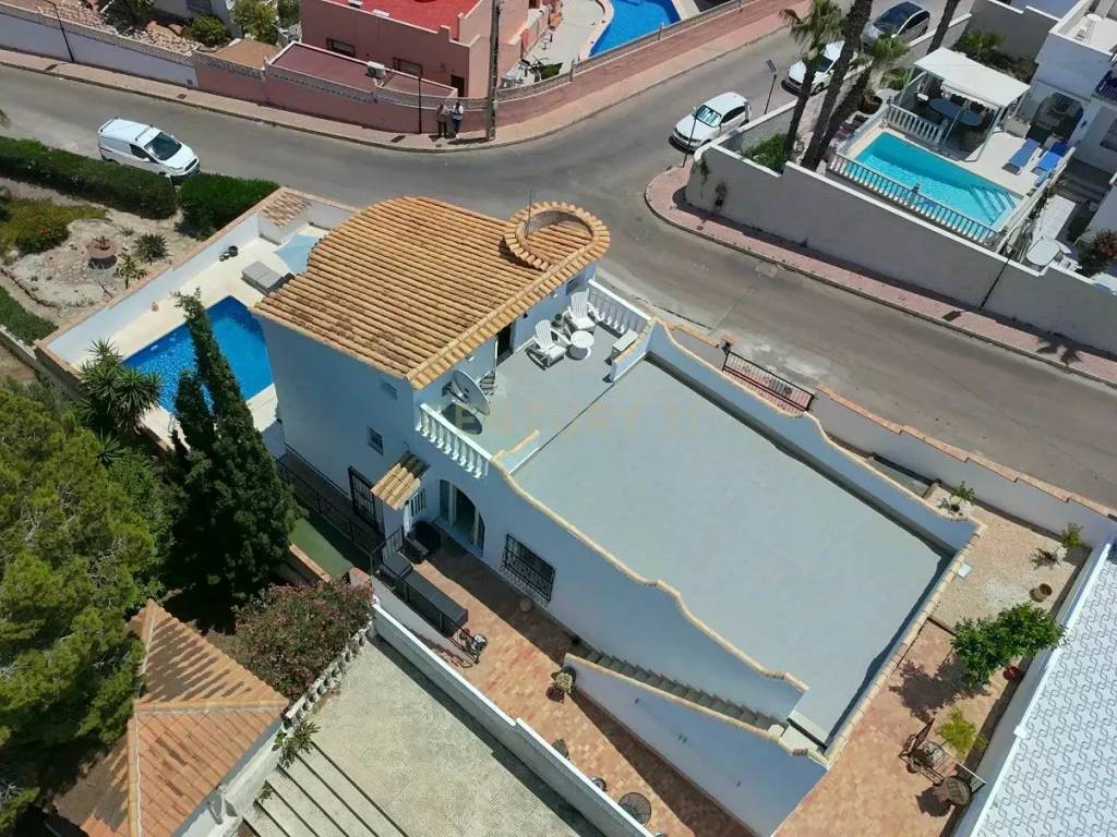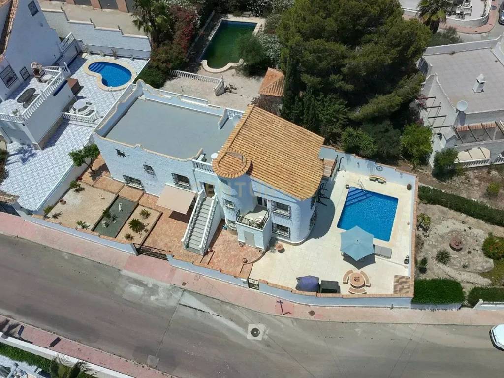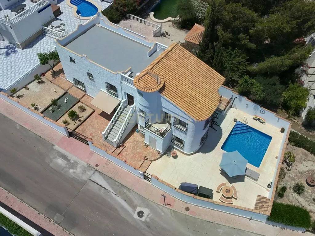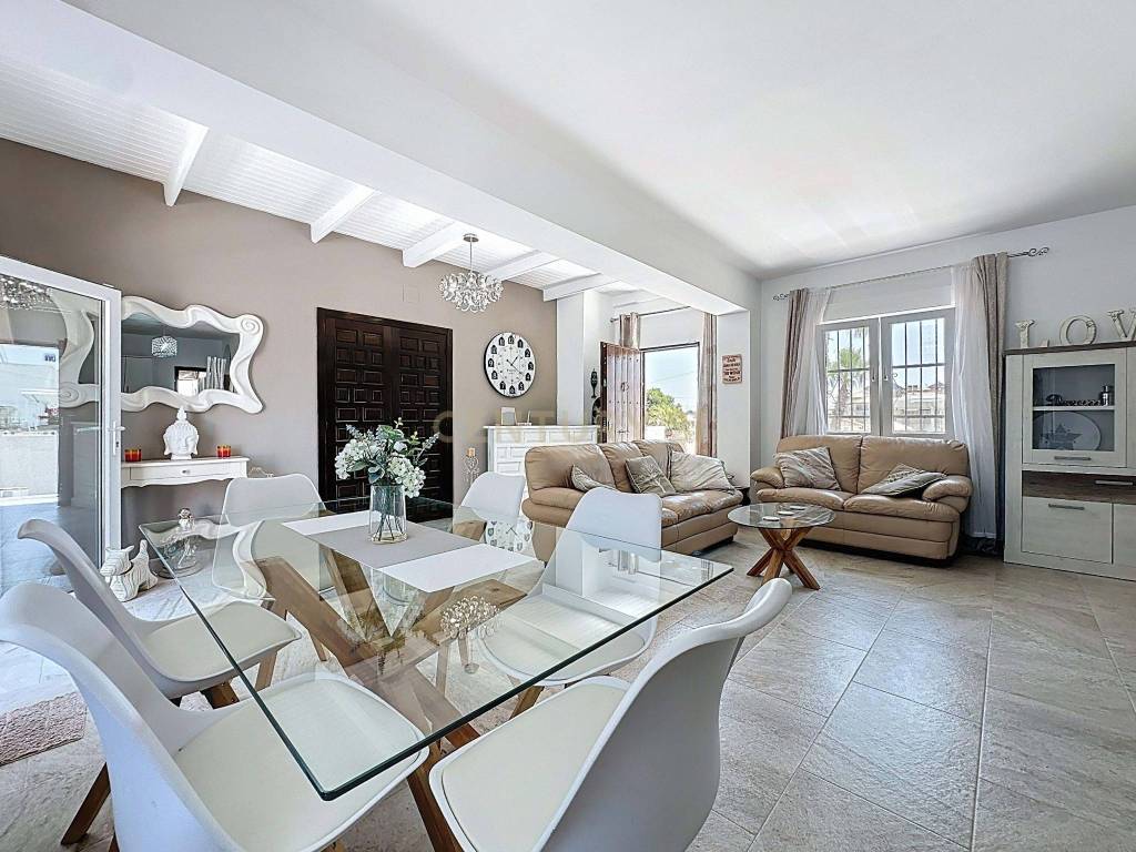 In the exclusive area of Blue Lagoon in Orihuela Costa, you will find this spectacular detached Mediterranean-style villa, fully renovated and ready to move into. With a built area of 203 m and a private plot of 300 m, this property offers the perfect balance of elegance, functionality, and comfort in a privileged setting.