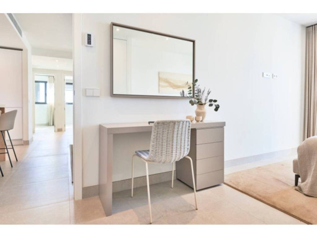 The high-quality fittings include a security entrance door, underfloor heating in the bathrooms, air conditioning for hot and cold days, high-quality double glazing and practical built-in wardrobes. The modern aerothermal technology with heat pump and photovoltaic systems ensure sustainable and efficient energy consumption.