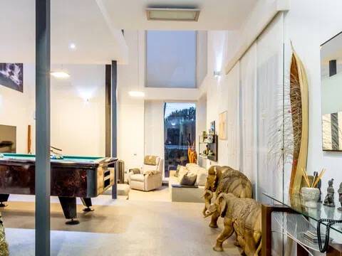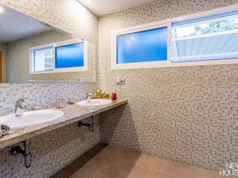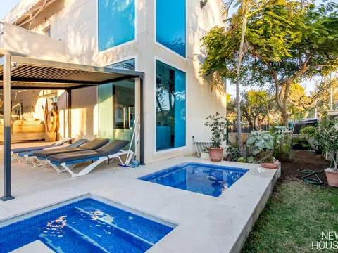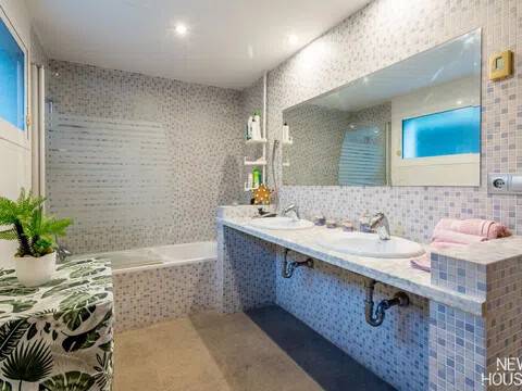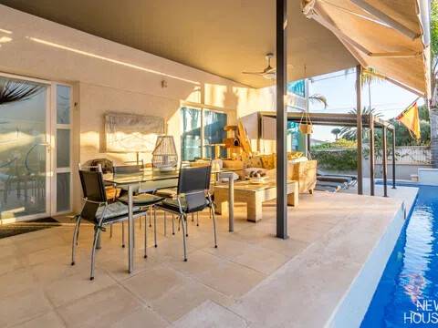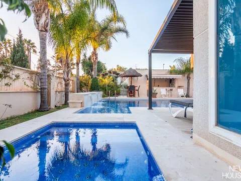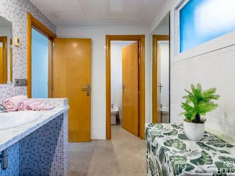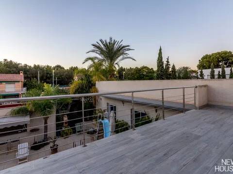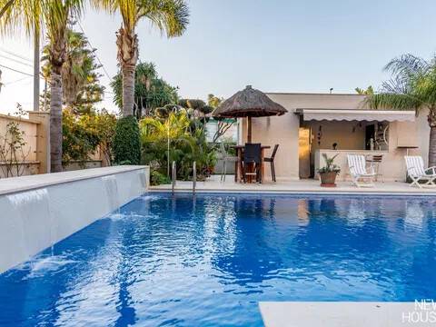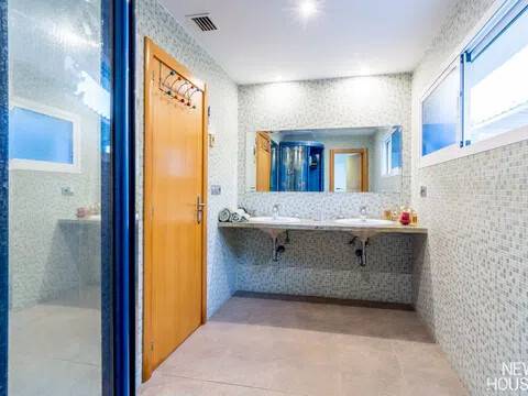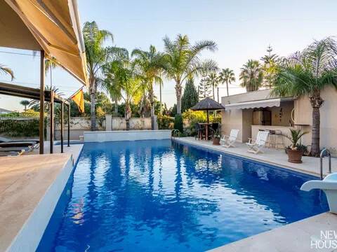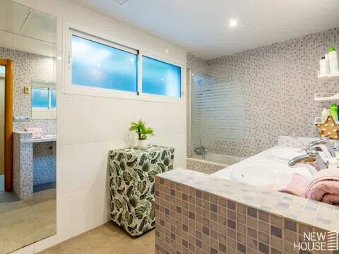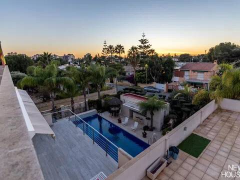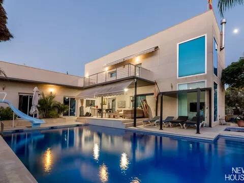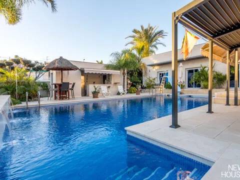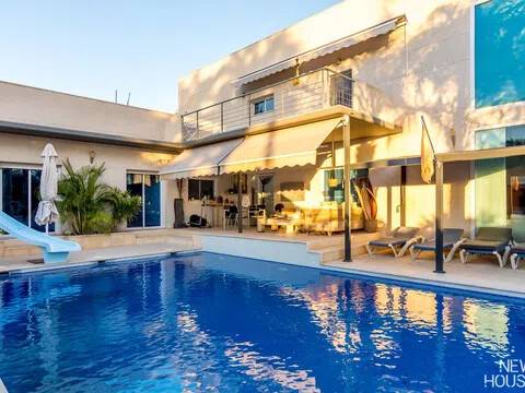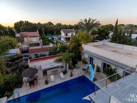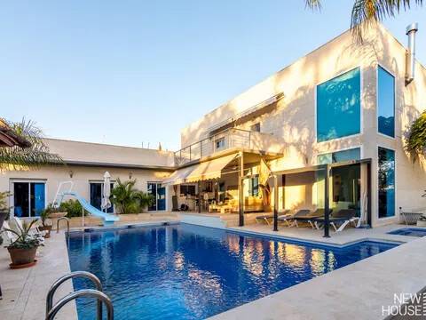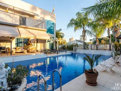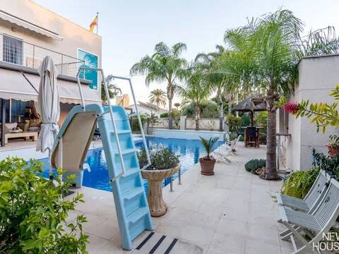 Bienvenido a esta espectacular vivienda en El Campello, donde la modernidad y la comodidad se fusionan en un entorno único! Construida en 2008, esta casa de dos plantas ofrece un estilo arquitectónico moderno que refleja elegancia y funcionalidad. Al ingresar, te recibirán amplios espacios y una distribución inteligente. El corazón de la casa es una cocina encantadora con isla, perfecta para los amantes de la gastronomía. Equipada con electrodomésticos modernos y funcionales, la cocina se abre hacia un acogedor comedor, creando el lugar perfecto para disfrutar de comidas en familia. El salón, impresionantemente espacioso, se convierte en el punto de encuentro ideal. La presencia de una chimenea que funciona a la perfección agrega un toque de calidez, creando un espacio acogedor para relajarse y disfrutar de agradables momentos en cualquier época del año. La casa cuenta con un total de cinco habitaciones, cada una con su propio encanto. En la planta baja, encontrarás una habitación con baño completo en suite, otra habitación con baño completo independiente y una tercera habitación también con baño completo independiente. Además, la habitación principal, con su lujoso baño en suite y vestidor, completa la planta baja. Tres de estas habitaciones tienen acceso directo al extenso jardín, creando una conexión perfecta entre el interior y el exterior. En la planta superior, descubrirás una habitación exclusiva con baño en suite. Además, desde una terraza muy grande en esta planta, podrás disfrutar de vistas panorámicas impresionantes. Esta terraza ofrece acceso a un solárium. El exterior de la casa es un verdadero paraíso. Un jardín muy grande alberga una variada selección de plantas y árboles frutales y de verduras. Imagina disfrutar de barbacoas en la zona especialmente diseñada para ello o relajarte junto a la piscina de agua salada. Además, varios trasteros y una plaza de aparcamiento para dos coches añaden practicidad a esta residencia excepcional. La propiedad ha sido equipada con todas las comodidades modernas, incluyendo aire acondicionado regulable en cada habitación y armarios empotrados que optimizan el espacio. La casa ha sido cuidadosamente mantenida y representa una oportunidad única para aquellos que buscan la combinación perfecta de elegancia y funcionalidad. La casa cuenta con una ubicación privilegiada. La playa está a solo 10-15 minutos a pie, y hay colegios y guarderías muy cerca. El supermercado grande más cercano está a solo 3 minutos en coche. Además, las líneas de autobús 21 y 22, así como el tranvía línea 3, están convenientemente ubicados a 8-15 minutos a pie. Si estás en búsqueda de una nueva vivienda, esta casa podría tener lo que necesitas. Estamos aquí para ayudarte a descubrir si es la elección adecuada para ti.
