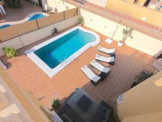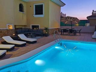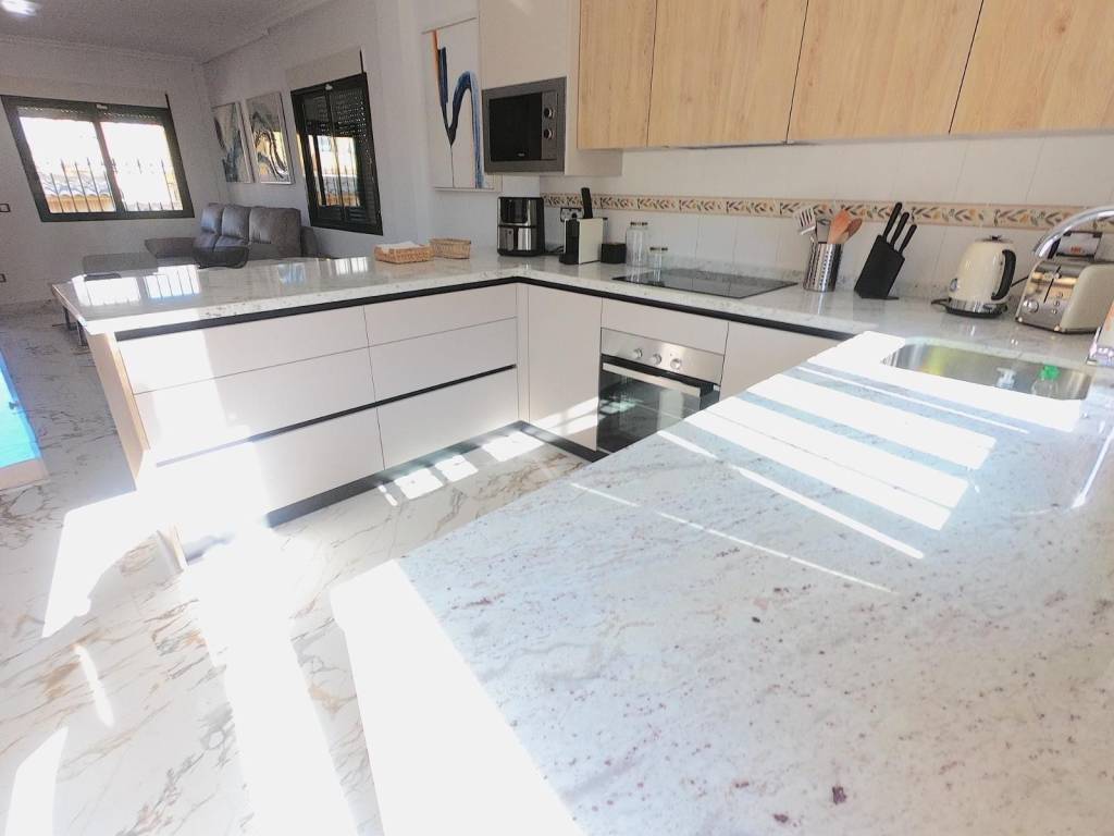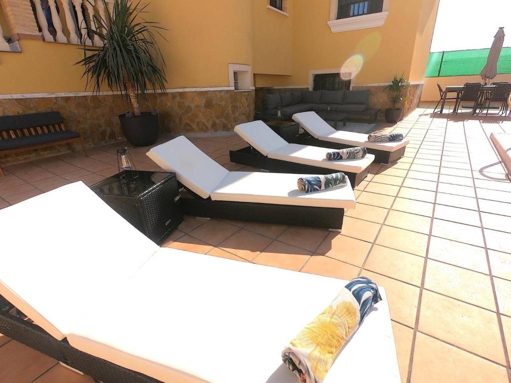 Discover this stunning villa located in the peaceful Lo Crispín urbanisation (Algorfa), perfect for an unforgettable holiday. Available for holiday rentals with a minimum stay of 10 days and up to 6 months.Ground floor: 2 spacious double bedrooms with fitted wardrobes 1 full bathroom with walk-in shower Fully furnished and equipped open-plan kitchen Bright and spacious living-dining roomUpper floor: Master bedroom with king-size bed, en-suite bathroom, and direct access to a private solarium, ideal for relaxing and soaking up the sunThe property also includes a basement with capacity for 3 vehicles.Outdoor areas: Several relaxation areas Barbecue area Large private poolCommunal areas: Communal swimming pool Beautiful landscaped gardensLocated just minutes from the prestigious La Finca Golf, with all necessary services nearby and a short drive to the beaches of the Costa Blanca.CONTACT FOR MORE INFORMATION