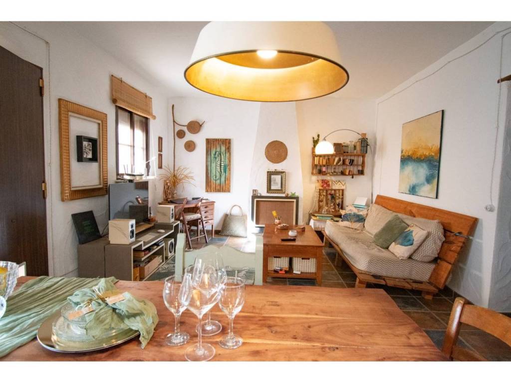 The main house, approximately 66m2, has been fully renovated and features two bedrooms, a stylish bathroom, and a bright open-plan living area with fireplace and fitted kitchen—perfect for year-round living.