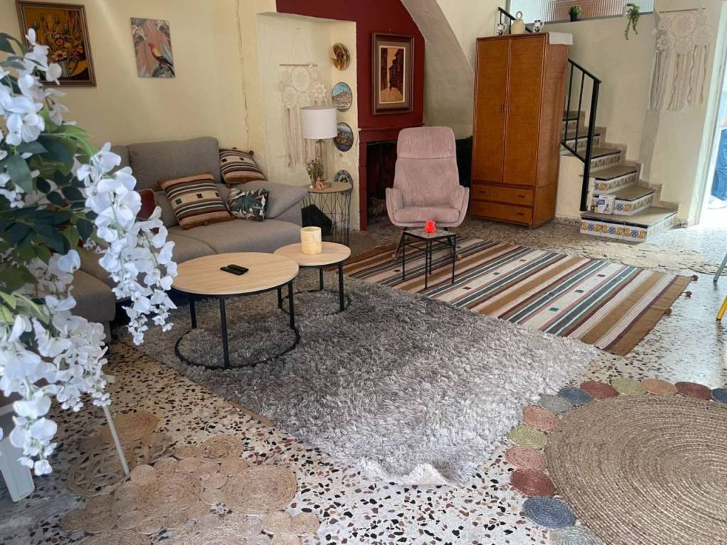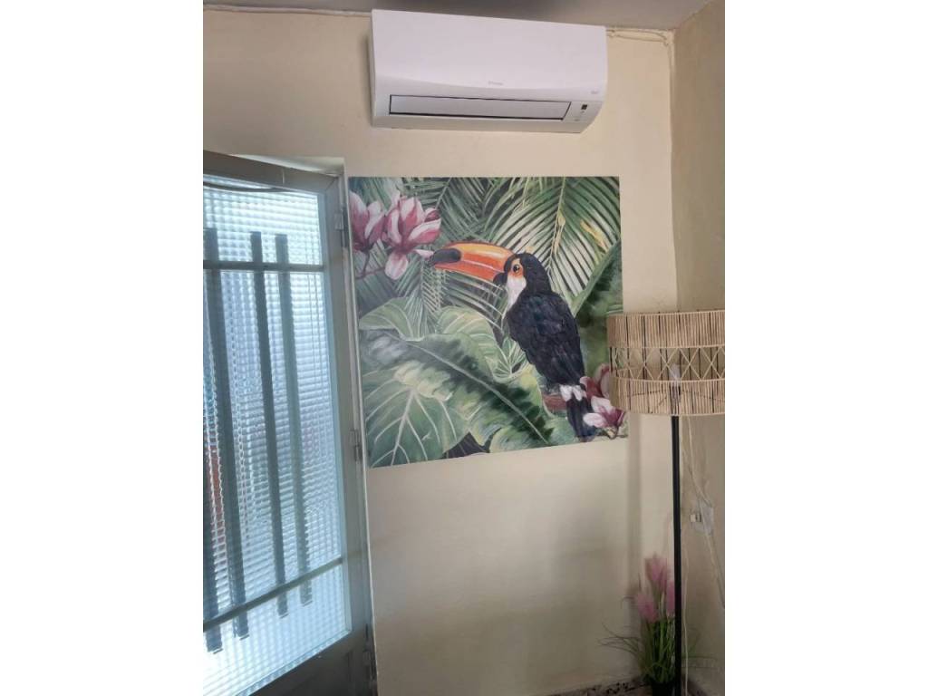 Subiendo a la primera planta, encontrarás tres habitaciones que garantizan descanso y privacidad. Desde el hall-sala de estar, accedes a una amplia terraza soleada donde podrás disfrutar de vistas despejadas y momentos inolvidables al aire libre. La casa incluye muebles y electrodomésticos, así como aire acondicionado para mayor confort.