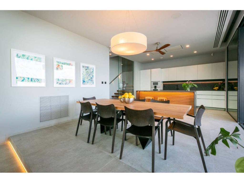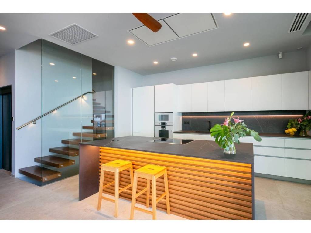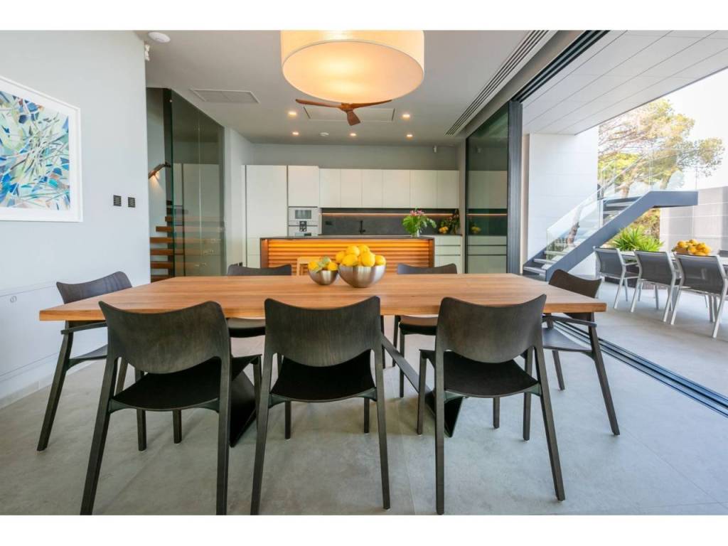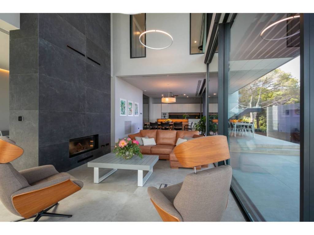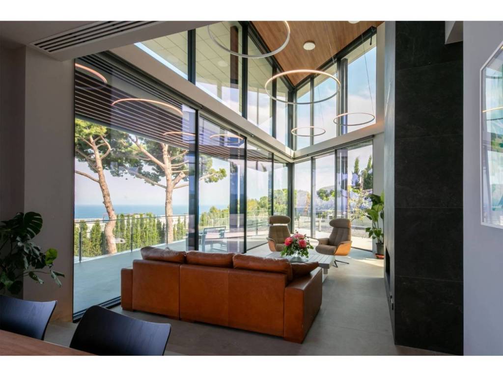 Su arquitectura y diseño interior ha sido cuidado en todos sus detalles, con un plus de originalidad en su fachada lo que la convierte en una vivienda única, con numerosas estancias y grandes ventanales de suelo a techo y dobles alturas que integran el mediterráneo en todas las estancias.