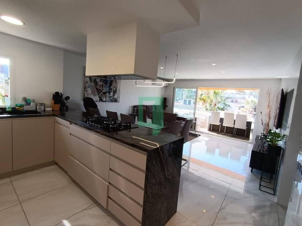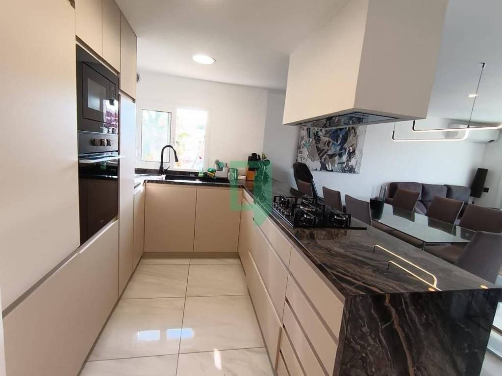Upon entering the hall we find one of the 3 double bedrooms, then we have an American kitchen with access to the terrace and high quality appliances. Then we have a full bathroom with a shower tray. This apartment has an elevator and parking in the same building where you can park several cars.