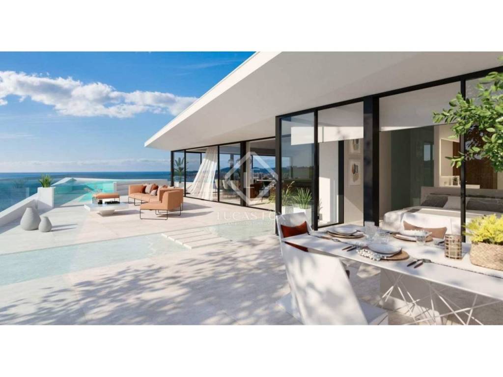 This particular home is located on the second floor and has a terrace of 206 m². The elegant living room, dining room and kitchen lead out to the delightful terrace, where there is space for dining alfresco.