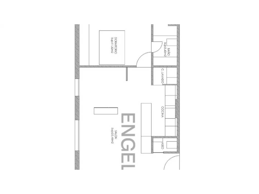 La distribución consta de un salón inundado de luz de distribución muy cuadrada con cocina integrada con todos los electrodomésticos incorporados, cuarto de lavadora-secadora independiente, un dormitorio principal con baño completo en suite y un aseo de cortesía.