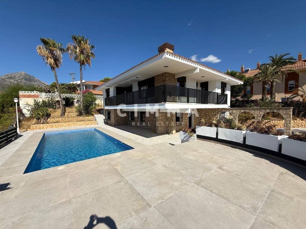 Completely Renovated Luxury Villa with Panoramic Sea Views in La Nucía.Originally built in 1975 and newly finished to the highest standards, this fully renovated villa represents a unique opportunity for those seeking modern comfort in one of the most privileged locations in La Nucía.Its stunning panoramic sea views, extending over Benidorm and towards Albir, make every stay a special place.Spread over two levels, the property offers spaciousness, natural light, and designer finishes:Main floor: spacious and bright living room with large windows framing the Mediterranean views, brand new open-plan modern kitchen integrated with dining area and lounge, master suite with elegant ensuite bathroom, and a second bedroom with full bathroom. High-quality built-in wardrobes provide order and functionality.Lower floor: two additional generously-sized bedrooms sharing a modern bathroom, laundry area and service, recently installed second kitchen with direct access to the pool terrace, ideal for guests and family gatherings. Direct connection to the closed garage.Outside, the villa offers a large terrace to enjoy spectacular sunrises and sunsets, private plot with multiple landscaping and leisure options, pool, and a wide driveway with space for several vehicles.Spacious, elegant, and ready to move in, this property is ideal as a family residence or as a luxury retreat on the Costa Blanca, with the security and professional service of Cimma Real Estate.