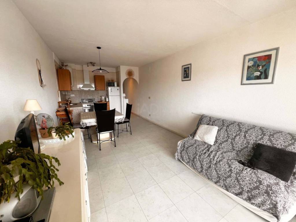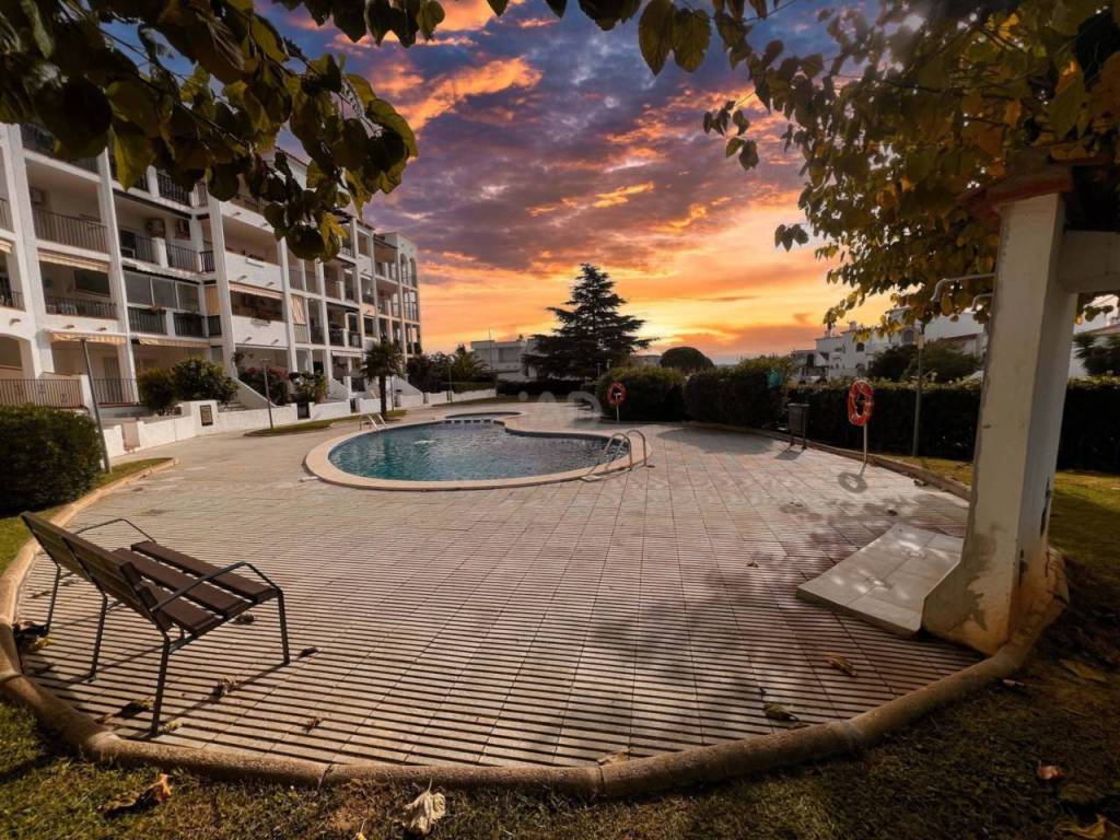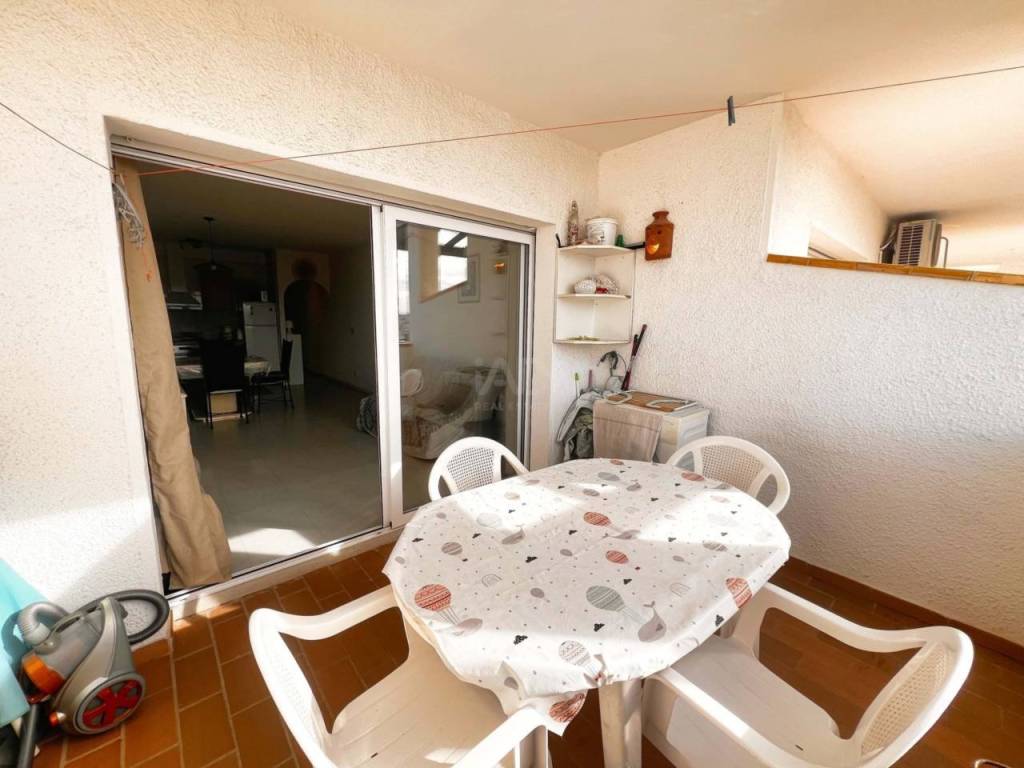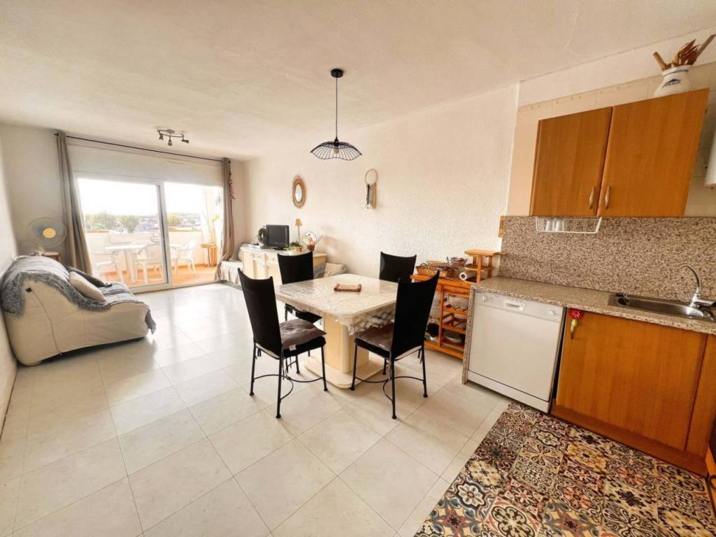EMPURIABRAVA – ZONA FLAMICELL. En una residencia tranquila de solo tres plantas con piscina comunitaria, encontramos este ático de 56 m² construidos, situado en la tercera y última planta (sin ascensor).