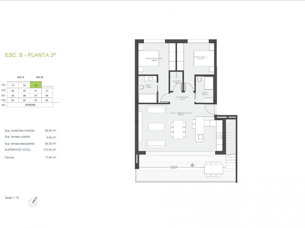 NEW BUILD RESIDENTIAL COMPLEX IN LAS COLINAS GOLFNew Build developments consists of 15 luxury apartments with huge terrases overlooking the surrounding natural green area.We have made a combinations of modern and traditional Mediterranean Arhcitecture. Our idea from the beginning has been to make the apartments, with a material description inclutding amongst others, underfloor heating with water, quooker tap, air renewal system, sound reducing ceilings, laquered kitchens, smart home system and much more.When taking the privileged location and views into consideration we believe that complex offers the ideal conditions to meet the criteria of clients with exquisite taste. The thirt floor consists of 3 apartments:2 apartments comes with 3 bedrooms, 3 bathrooms and a guest toilet and 1 apartment comes with 2 bedrooms, 2 bathrooms. From the apartments you have direct access to big terraces in the same level as the apartment. You have furthermore a staircase taking you to solarium, where each top floor apartment has a private swimming pool, a toilet, an outdoor kitchen with a small lift from the kitchen downstairs and much more.On Las Colinas Golf & Country Club you will furthermore find a wide variaty of amenities for the property owners such as tennis, padel-tennis, fitness, massage, golf, trekking and much more. Inside Las Colinas Golf & Country Club you will also find a number of restaurants as well as a minimarket with fresh baked bread and much more.You will enjoy 200,000 square meters of beautiful Mediterranean landscapes and you will be able to make scenic walks through the lush indigenous, native flora and the extensive fields of orange and lemon groves.Complex located 40 minutes from Alicante airport and 1 hour Murcia - Corvera airport.