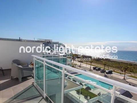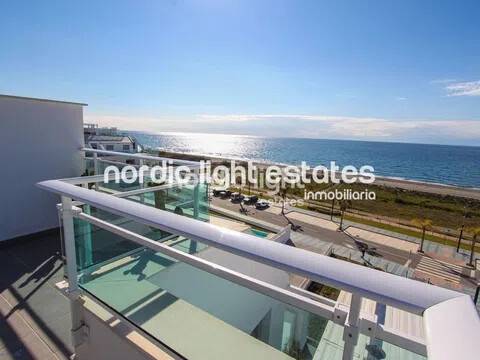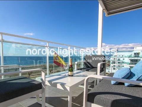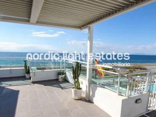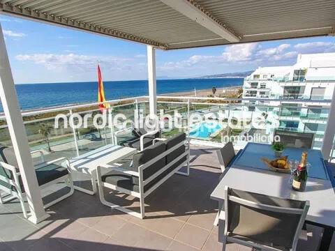 Exclusivo ático de lujo en primera línea de playa, situado en la prestigiosa urbanización Duna Beach, en El Morche (Torrox Costa), una de las zonas más solicitadas de la Costa del Sol. Con una inmejorable orientación sur, esta propiedad ofrece vistas panorámicas al mar Mediterráneo y una luminosidad excepcional durante todo el día, creando un ambiente elegante y relajado. El ático se distribuye en un amplio y luminoso salón-comedor con acceso directo a una terraza frontal al mar, perfecta para disfrutar del sol, los desayunos al aire libre o los mágicos atardeceres sobre el Mediterráneo. Dispone de dos dormitorios espaciosos, el principal con baño en suite, y un segundo baño completo, ambos con acabados de alta calidad. En la planta superior se encuentra una gran azotea privada con ducha exterior, ideal como zona chill-out o de entretenimiento, donde podrás relajarte y disfrutar de unas vistas inigualables al mar y a toda la urbanización. Entre sus características destacan: Piscina comunitaria rodeada de jardines cuidados Plaza de garaje privada y trastero incluidos en el precio Diseño moderno y materiales de primera calidad Aire acondicionado y ventanas con doble acristalamiento La urbanización se encuentra frente a la Playa de Duna, una reserva natural protegida, lo que garantiza tranquilidad, privacidad y un entorno único. A escasos minutos encontrarás restaurantes, chiringuitos, supermercados y todos los servicios necesarios. Una vivienda ideal tanto como residencia permanente como para segunda vivienda o inversión en alquiler vacacional, ya que los áticos frontales en Duna Beach son muy exclusivos y altamente demandados. Torrox is a town in the province of Málaga. It is part of the so-called Costa del Sol. Famous for being the town with the best climate in Europe. Its average annual temperature is around 18 degrees Celsius. The idea of living in an eternal spring in Torrox could become a reality. The town is divided into Torrox Pueblo and Torrox Costa. Each division has its own charm. On the one hand, the coast and the sun that accompanies it, and on the other, the mountains. The atmosphere that pervades Torrox can be described as tranquil, which makes it a particularly welcoming village. Please contact Nordic Light Estates to arrange a viewing or for more information. This property has reference number: NL202869 De conformidad con lo dispuesto en el art 20.1 del TRLDCU, el precio del inmueble, SE INCREMENTARÁ en los siguientes importes: IMPUESTOS A CARGO DEL COMPRADOR. En el caso del IVA al tipo vigente del 10% (Ley 37/1992, de 28 de diciembre, del Impuesto sobre el Valor Añadido). En el caso de ITP sobre el mayor de los valores entre el precio de venta o el de referencia catastral oscilando entre el 3.5% y el 7% en función de las condiciones del comprador, todo ello de acuerdo con (Real Decreto Legislativo 1/1993, de 24 de septiembre, por el que se aprueba el Texto refundido la Ley del Impuesto sobre Transmisiones Patrimoniales y Actos Jurídicos Documentados). NOTARÍA Y REGISTRO: Son gastos sometidos a arancel, si bien su coste estimado puede oscilar para la notaría en un precio de 1500€ y en el caso del registro en un precio de 500€ (Real Decreto 1426/1989, de 17 de noviembre, por el que se aprueba el Arancel de los Notarios y Real Decreto 1427/1989, de 17 de noviembre, por el que se aprueba el Arancel de los Registradores de la Propiedad respectivamente) EN EL CASO DE PRECISAR FINANCIACIÓN BANCARIA: El importe de los gastos adicionales deberán ser consensuados con la entidad financiera.