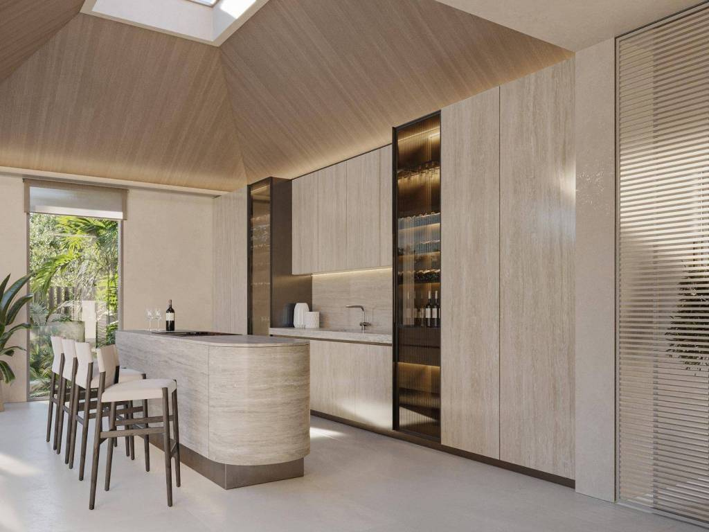 The home includes five spacious bedrooms, each with its own en suite bathroom, creating a private retreat for every resident. The master suite features a lavish bathroom, walk in dressing room and serene views of the landscaped surroundings. Two additional guest bathrooms add convenience and elegance. The open plan living and dining area flows into a state of the art kitchen, designed for both everyday living and extraordinary entertaining.