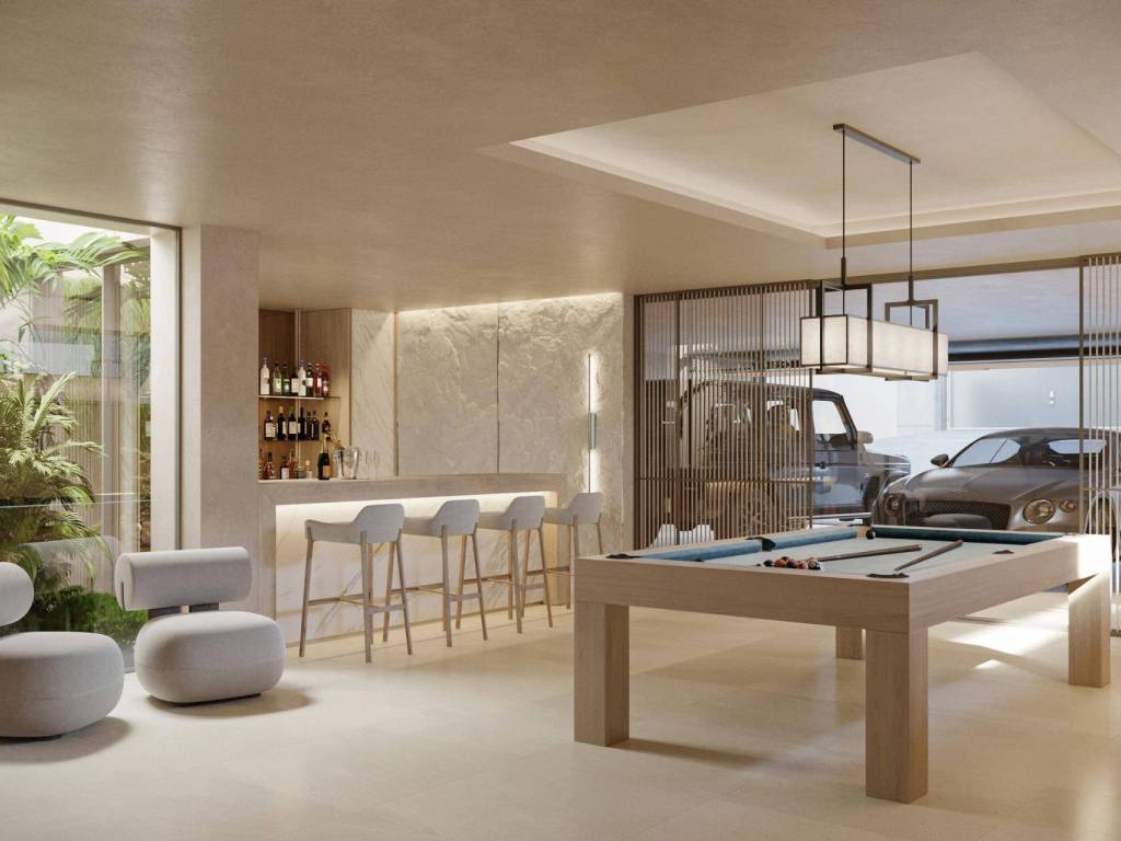 This villa offers exceptional lifestyle amenities including a fully equipped gym, luxurious spa with sauna and Hammam, a cinema room, a sophisticated bar and games room, and an elevator. The underground garage accommodates two cars, with additional ground floor parking for two more vehicles. Underfloor heating with smart home control and ducted air conditioning via Airzone system ensure comfort all year round.