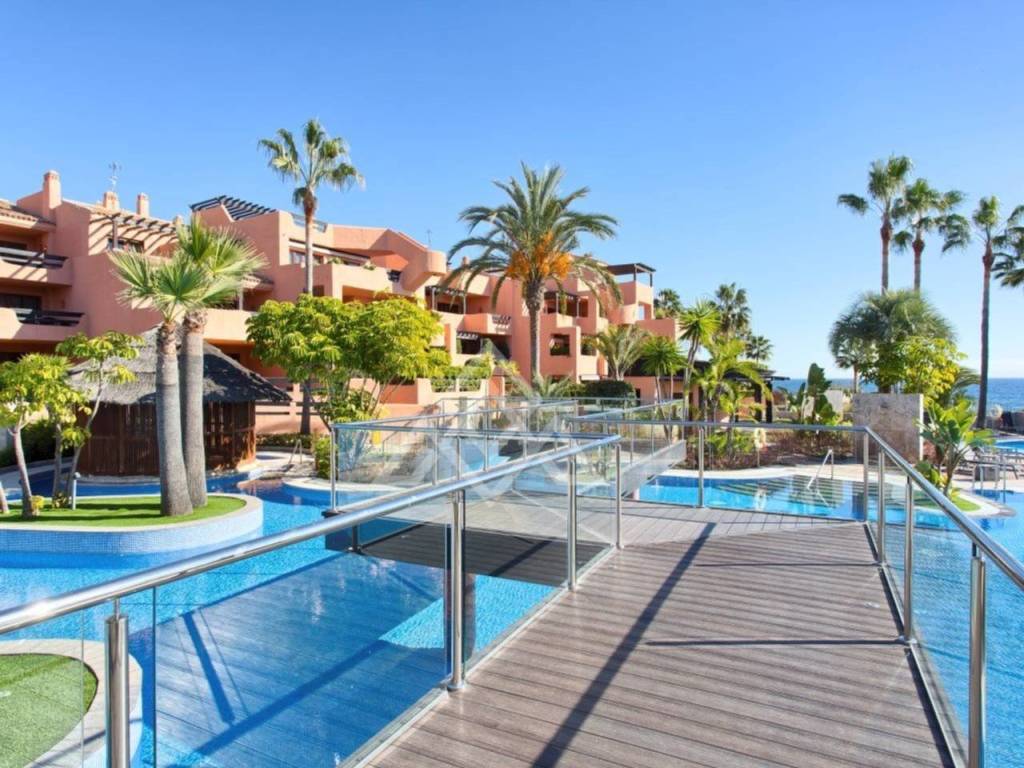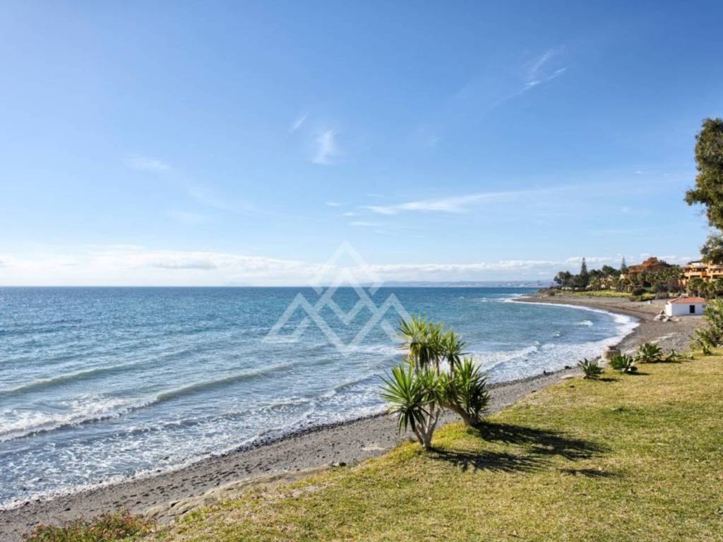 Lovely middle-floor apartment in an exclusive beachfront development on the New Golden Mile, between Marbella and Estepona. Facing southeast, it features a bright living-dining room opening onto a pleasant covered terrace of a good size, perfect for relaxing while enjoying views over the sea, the swimming pool and the lush communal gardens.