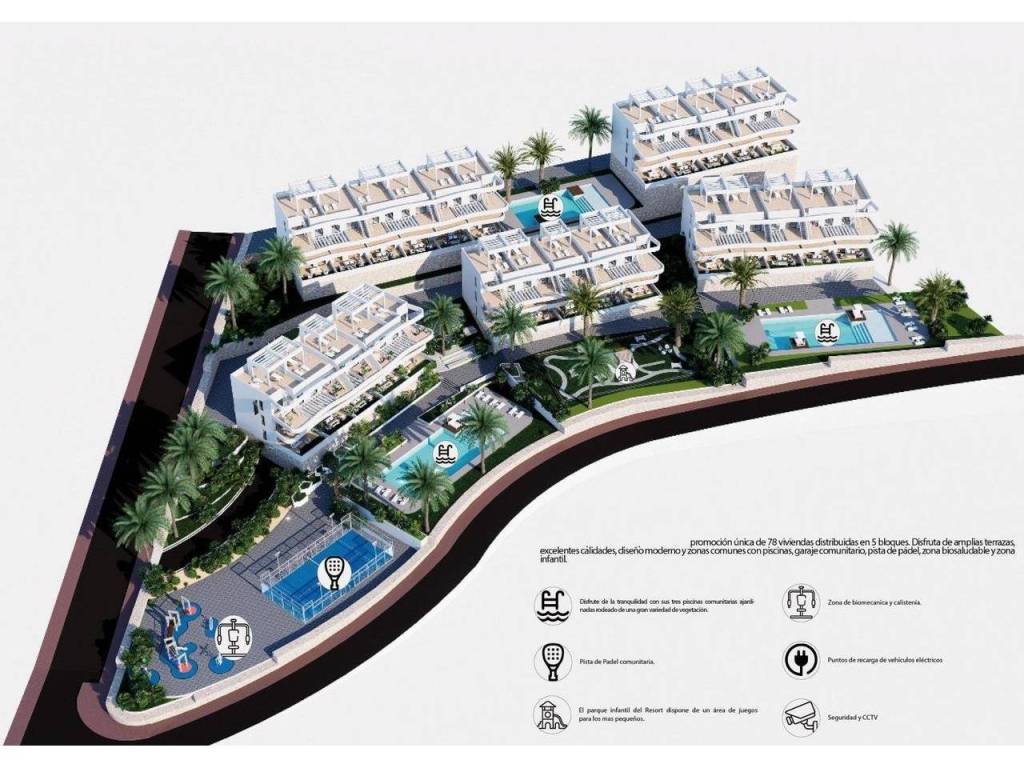 This complex of modern apartments with 2 bedrooms, 2 bathrooms, open plan kitchen with the living area. Some of the apartments will have sea views.