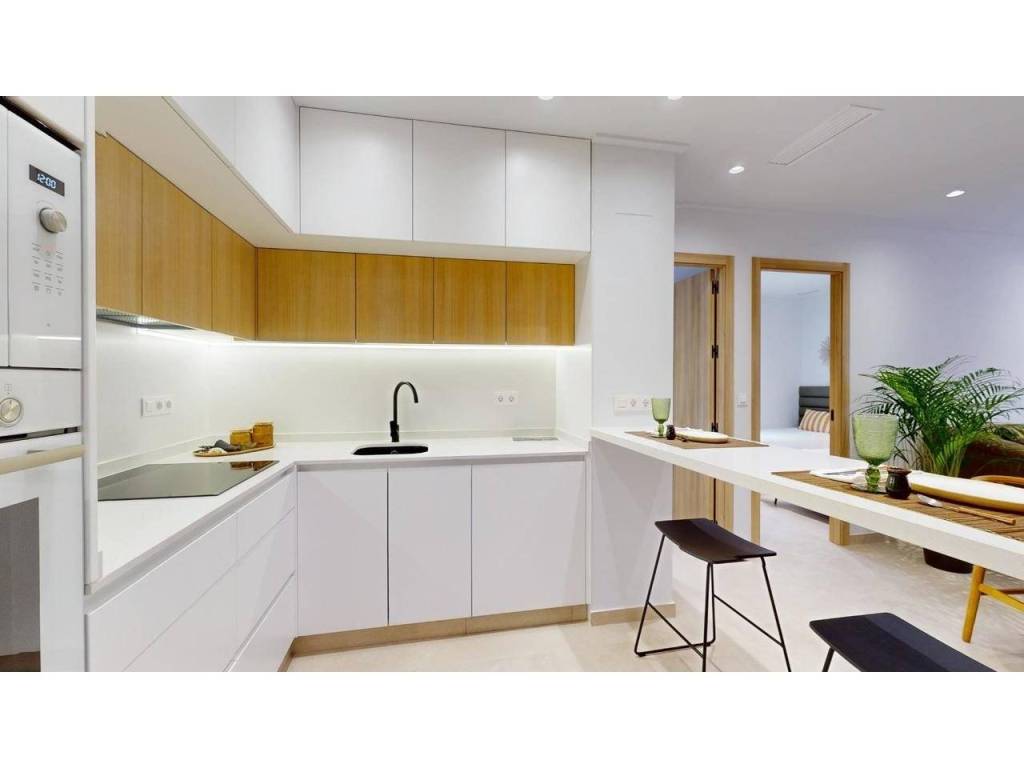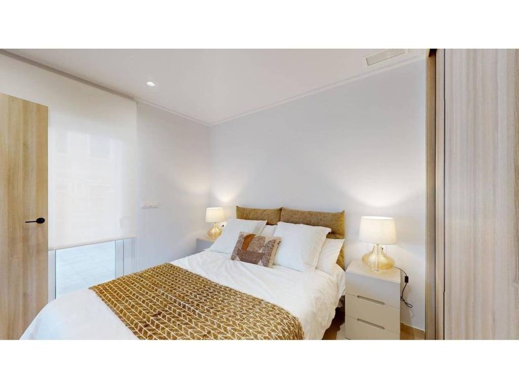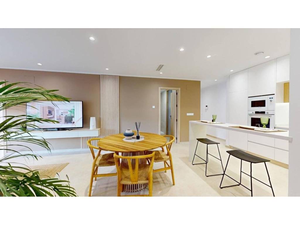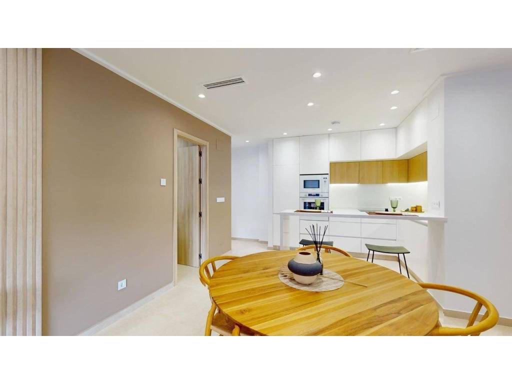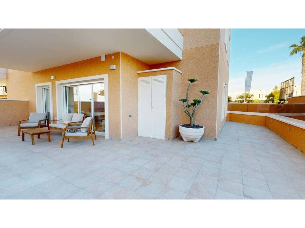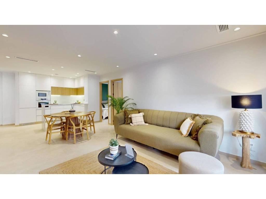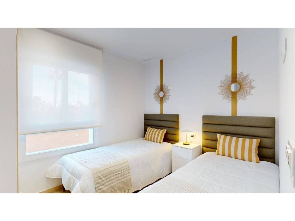 This apartments have 3 bedrooms, 2 bathrooms, open plan salon with kitchen, ground floor with private garden, middle floor with terrace and top floor with private solarium.