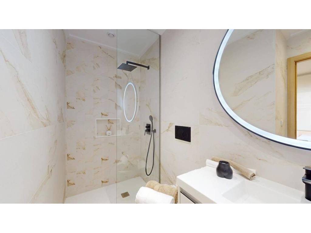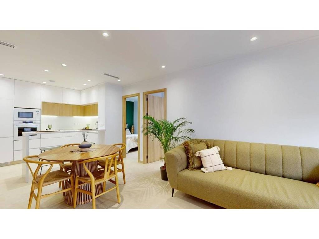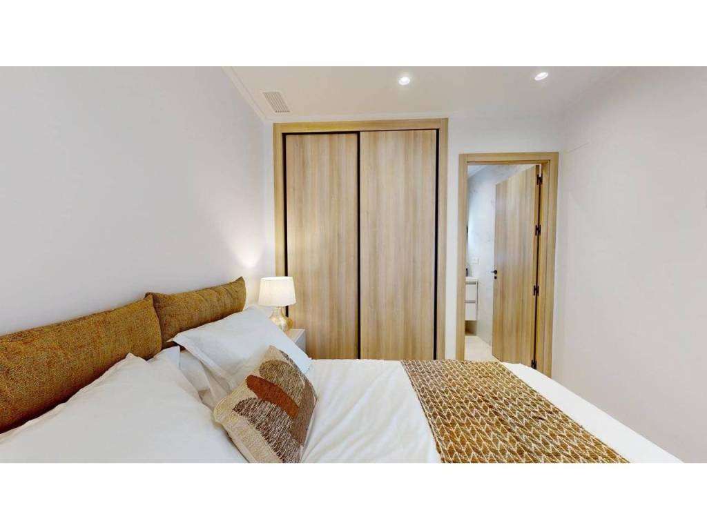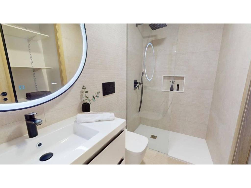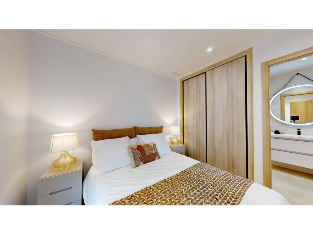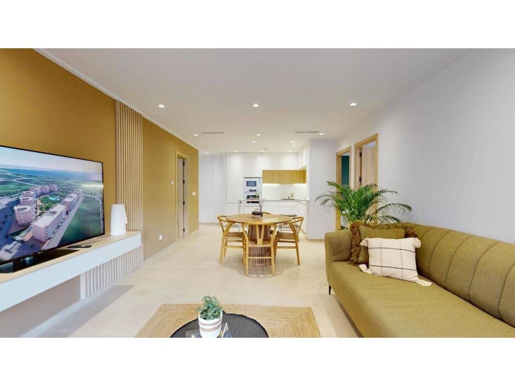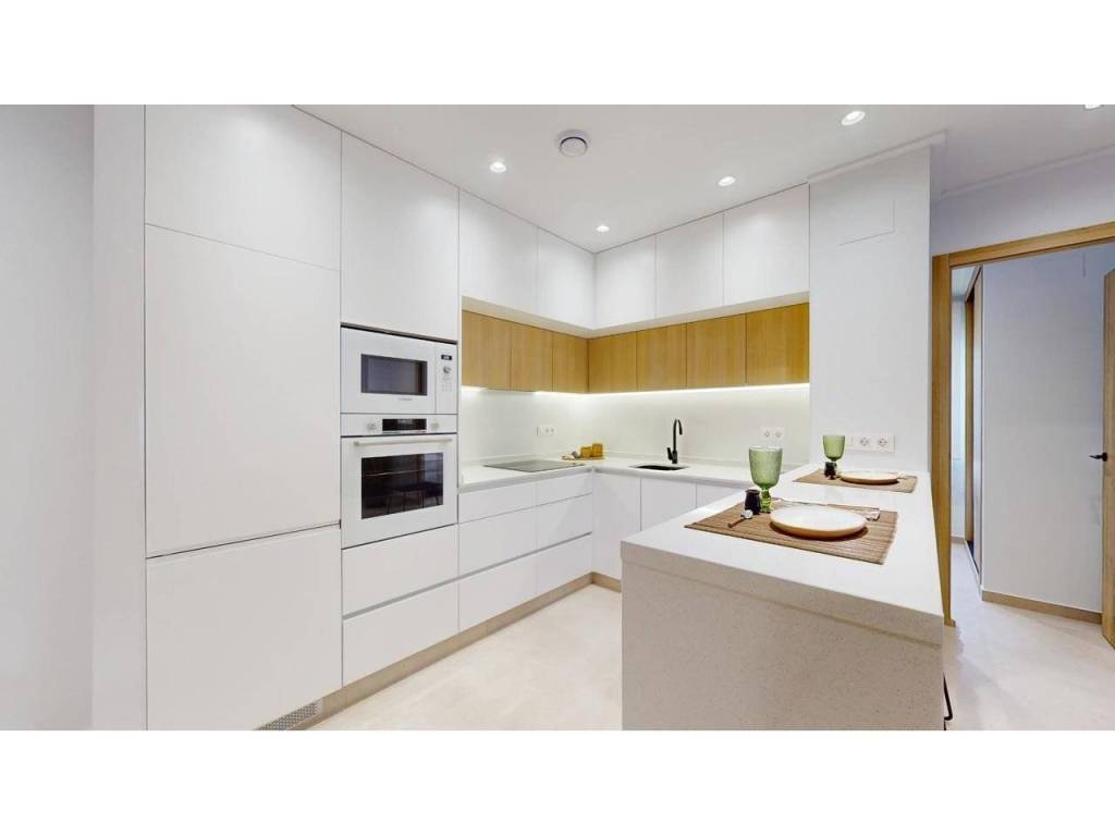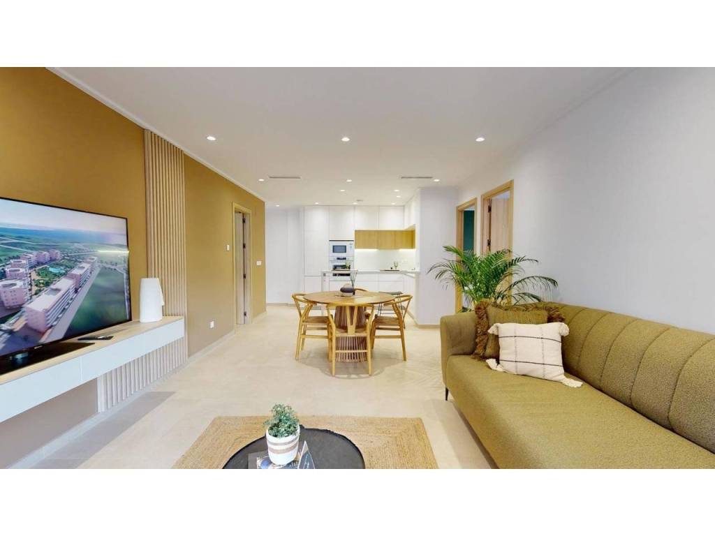 This apartments have 3 bedrooms, 2 bathrooms, open plan salon with kitchen, ground floor with private garden, middle floor with terrace and top floor with private solarium.