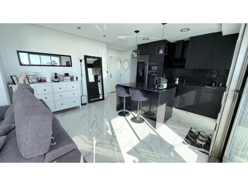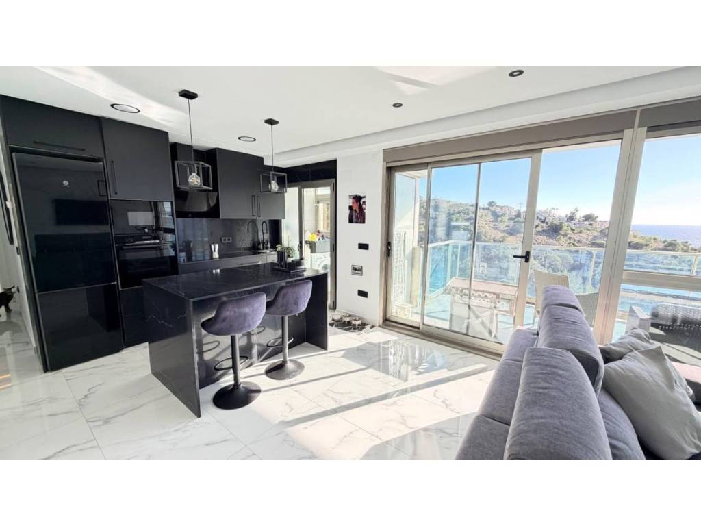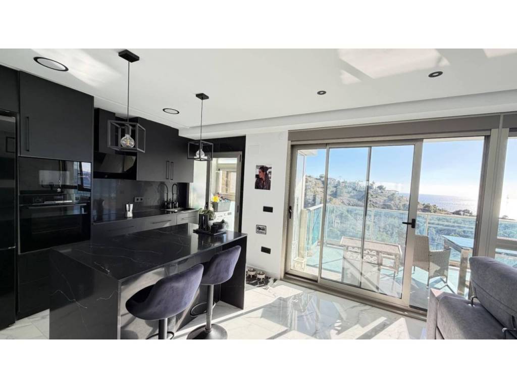 La vivienda cuenta con dos amplias habitaciones, un vestidor, dos baños completos, galería independiente y una terraza privada ideal para disfrutar del amanecer o las noches frente al Mediterráneo.