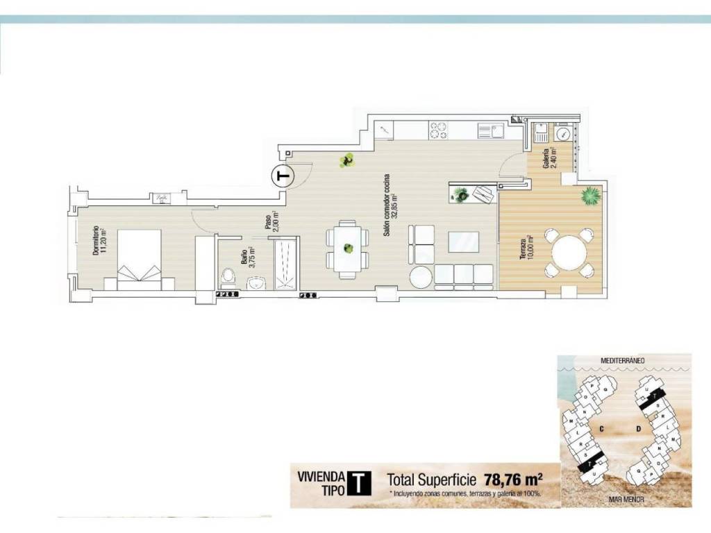 NEW BUILD RESIDENTIAL COMPLEX IN LA MANGA New Build residential complex is located in a unique and special place, between two seas, in a privileged location and with all the services you may need at your fingertips in the Region of Murcia, beautiful coastline with the beaches of transparent and shallow waters. At this residential complex apartments have been designed to make the most of every last corner of the property, as well as the the choice of materials and the design of the homes. Live a world of sensations and pleasurable moments with all the services and activities that you desire at your fingertips. Installations - Air conditioning: Air conditioning system by ducts, for hot and cold, throughout the house (except in distributors and bathrooms) and operated by central console. Electrical appliances: Stainless steel oven. Black ceramic hob with three burners. Stainless steel refrigerator. Extractor hood integrated in furniture. Integrated dishwasher. Common areas: Access to the building via white PVC door and double glazing with air chamber. Entrance halls and stair treads specially decorated with national marble. White thermo-lacquered aluminium handrail on interior staircases. Lighting by presence detection in basement and interior common areas. White motorised sectional garage access door. Stainless steel urbanisation railings. Video door entry system. Satellite dish with European channels. Swimming pool with landscaped solarium. La Manga del Mar Menor is a natural strip of land surrounded by two seas, the Mar Menor and the Mediterranean Sea. To this rarity you can add the multiple leisure and free time options, restaurants, supermarkets, medical censers, pharmacies, nautical sports censers, golf courses. La Manga is located on the north coast of the Costa Calida and is a popular holiday destination for tourists. The narrow land strip separating the warm lagoon and the colder sea has a unique microclimate. It's one of the most exotic areas in Spain. Corvera airport is about 1 hour drive away and Alicante airport about 2 hours away.