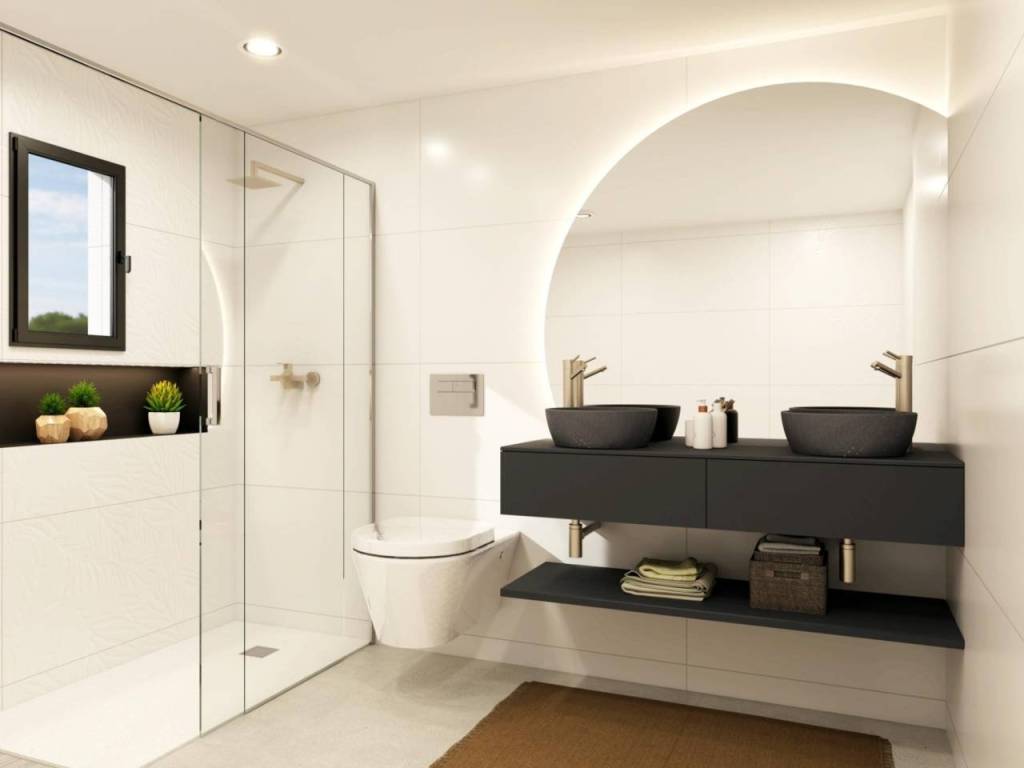 Uno de los grandes atractivos es la espectacular terraza solarium de 67 m², ubicada en la planta superior, que ofrece unas impresionantes vistas despejadas a la piscina, proporcionando un ambiente perfecto para relajarse al aire libre. Además, la propiedad cuenta con detalles de calidad como la preinstalación para aire acondicionado por conductos y suelo radiante instalado en los cuartos de baño, lo que añade un confort adicional en los días más fríos.