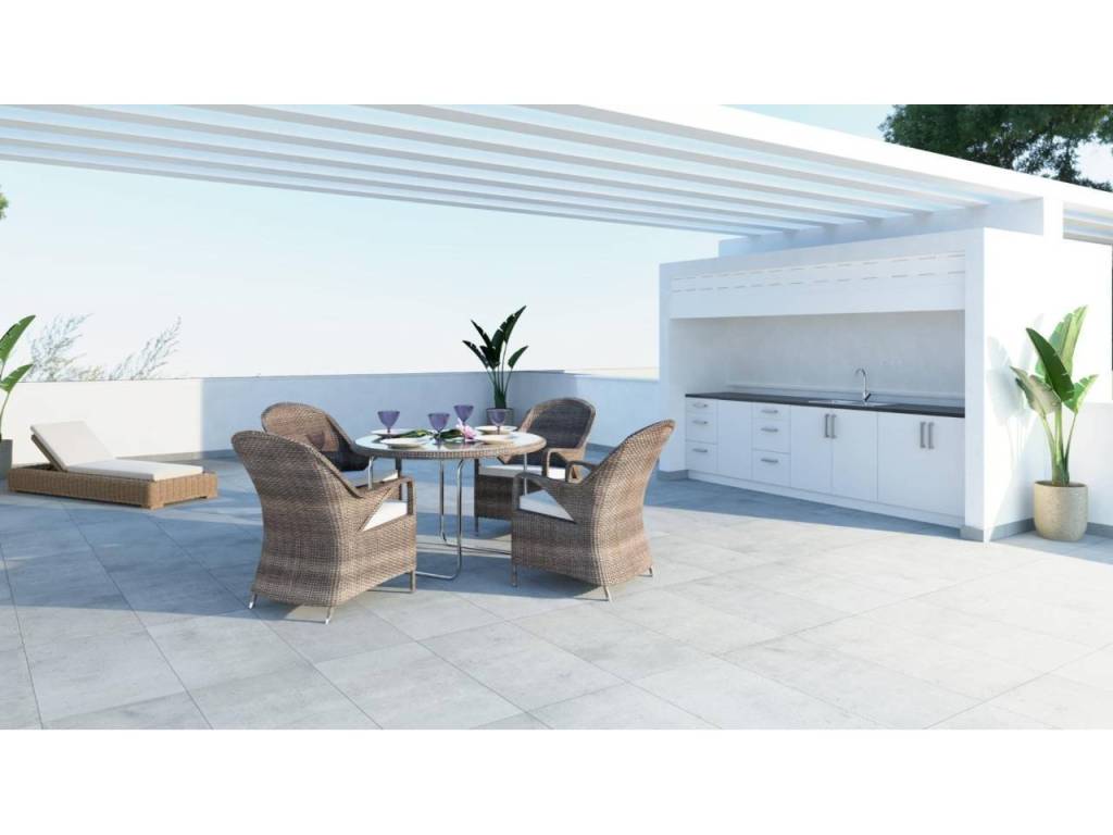 Descubre este magnífico ático en primera planta en Pilar de la Horadada (Alicante), una vivienda moderna y cuidadosamente diseñada para ofrecer el máximo confort. Al entrar, se aprecia un luminoso salón-comedor de 26 m² que se integra a la perfección con una cocina office, creando un espacio ideal para compartir y disfrutar en compañía. La vivienda dispone de dos dormitorios dobles con armarios empotrados, en donde el dormitorio principal destaca por su baño en suite, garantizando privacidad y comodidad, mientras que el segundo dormitorio se complementa con un cuarto de baño completo adicional.