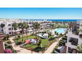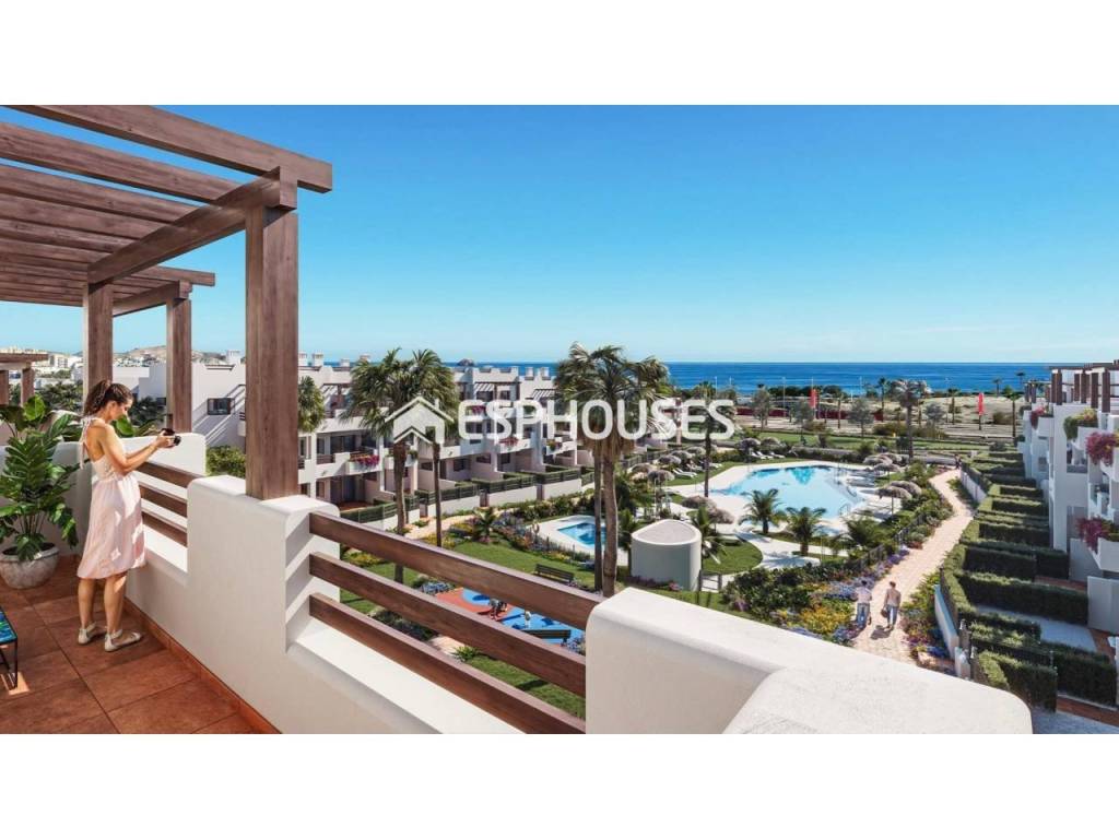 A residential complex of 1, 2, and 3-bedroom apartments on Los Nardos beach, on the Costa Almeria, southern Spain. The apartments are located a short walk from Los Nardos Beach and La Entrevista Beach on the Almería coast, near the towns of Águilas and Vera. The complex boasts spacious interior spaces, beautiful gardens, and plazas featuring a large communal swimming pool with a jacuzzi, bordered by a large natural grass lawn with showers, sun loungers, and thatched parasols. The complex also offers shared Wi-Fi. The spacious communal areas also include a children's play area within a secure gated community. This residential complex has a lot to offer: excellent amenities (bars, restaurants, supermarket, boutiques, ATM, chiringuito bars on the beach, etc.), a peaceful location in a spectacular natural setting, access to all daily services, and excellent sports facilities. Mar de Pulpí is an attractive and luxurious residential coastal town on the Costa de Almería in southeastern Spain, near San Juan de los Terreros. The area is known for its Andalusian architecture, peaceful atmosphere, and excellent, mild climate. With direct access to beaches such as Playa de Los Nardos and the proximity of the spectacular Pulpí Geode (the largest public geode in Europe), this destination offers a perfect combination of seaside relaxation, modern amenities, and unique natural and historical attractions.