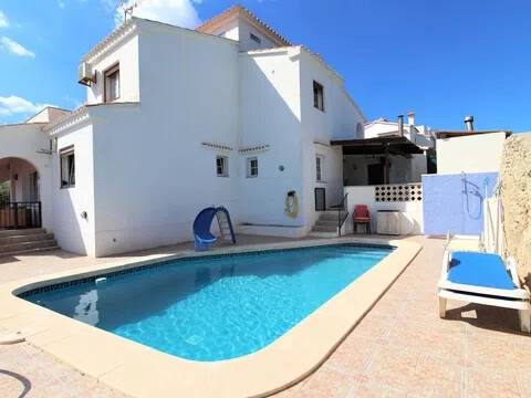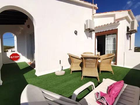 Genial casa familiar situada en zona muy tranquila de Menorca, Son Vilar, entre Mahón y Es Castell. La casa esta dividida en dos plantas y distribuida en 5 dormitorios dobles, 3 baños, cocina en forma de U con comedor y acceso a la terraza/comedor de verano y barbacoa, espacioso y luminoso salón con chimenea, la zona de la piscina esta genial ya que las baldosas son antideslizantes y para los niños da mucha seguridad, hay un trastero, un garaje para 3 coches, calefacción con gasoil. La casa dispone de 1 dormitorio doble y un baño situados en la planta baja.