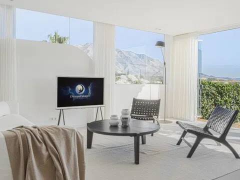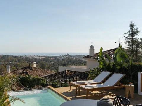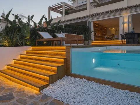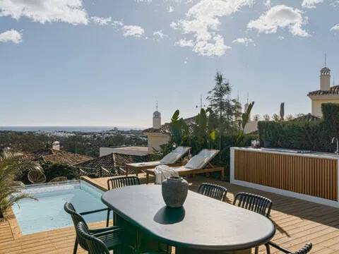 � Vistas Panorámicas y Piscina Privada en Palacetes Los Belvederes, Nueva Andalucía Sofisticado apartamento de lujo en Palacetes Los Belvederes, Nueva Andalucía, una de las urbanizaciones privadas más exclusivas de Marbella. Disfrute de la tranquilidad, la seguridad y las impresionantes vistas panorámicas al mar y a la montaña, ubicado estratégicamente en el corazón del Valle del Golf. Esta joya única, disponible para alquiler o venta, cuenta con 193 m² construidos y una generosa terraza privada de 47 m², ofreciendo un espacio elegante y equilibrado. Se distribuye en 3 dormitorios con sus respectivos baños en suite, sumando 3 baños modernos. El amplio salón-comedor se conecta con una cocina americana completamente equipada. La propiedad se entrega completamente amueblada con muebles de alta calidad cuidadosamente seleccionados. Como extras destacados, incluye una piscina privada y jardín, garaje privado más una plaza de aparcamiento adicional, armarios empotrados, calefacción central y aire acondicionado. La orientación sur garantiza la luminosidad y las vistas panorámicas. La construcción data del año 2003 y se encuentra en excelente estado (Certificado energético C/D). Palacetes Los Belvederes ofrece un estilo de vida exclusivo, rodeado de campos de golf de primer nivel y a solo minutos de Puerto Banús. El ambiente es de máxima privacidad y seguridad. Es una opción ideal para quienes buscan comodidad y calidad, ya sea como residencia permanente o como inversión de lujo en la Costa del Sol. Esta propiedad combina perfectamente lujo y ubicación inmejorable. Contáctenos hoy para obtener más detalles sobre las opciones de venta o alquiler y agendar su visita privada.