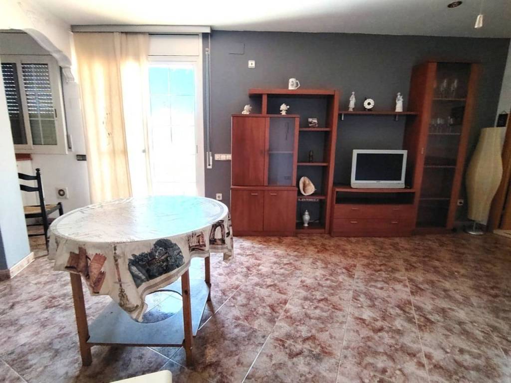 Cocina americana integrada en un salón con salida directa a la terraza