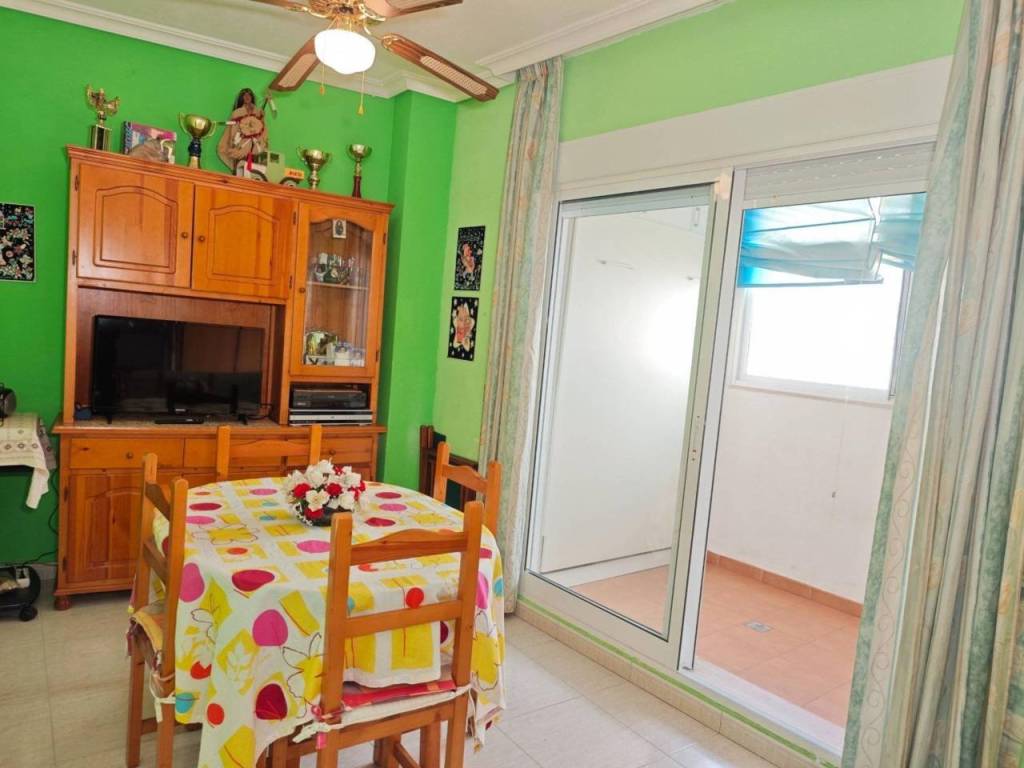 ¡Bienvenido a tu nuevo hogar en el corazón de Torrevieja! Este impresionante estudio, con una superficie generosa de 42 metros cuadrados, te ofrece un espacio amplio y luminoso que se adapta perfectamente a tus necesidades. Disfruta del confort que brinda la terraza cerrada acristalada; un lugar ideal para relajarte mientras disfrutas del paisaje interior. La cama abatible proporciona versatilidad al transformarse fácilmente entre dormitorio y sala multifuncional. Además, cuenta con una cocina independiente equipada con barra americana, perfecta para compartir momentos inolvidables cocinando o disfrutando de comidas rápidas cómodamente. El baño completo añade funcionalidad adicional a este encantador espacio amueblado y climatizado gracias al aire acondicionado incluido. Y si eres amante del sol y las actividades al aire libre, ¡la piscina comunitaria es el complemento perfecto! Esta propiedad se sitúa en planta baja dentro del casco urbano vibrante de Torrevieja, donde tendrás todo lo necesario cerca: tiendas, restaurantes y servicios esenciales están apenas a unos pasos. No pierdas esta oportunidad única; ven a descubrir tu refugio soñado hoy mismo!