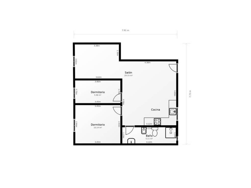 La vivienda se distribuye en dos dormitorios, salón-comedor, cocina independiente y un baño. Cuenta con cocina amueblada y equipada con muebles altos y bajos, vitrocerámica, horno y campana extractora. Dispone de suelos de gres en cocina, baño y resto de estancias.