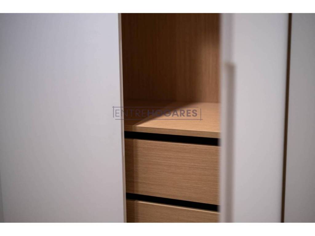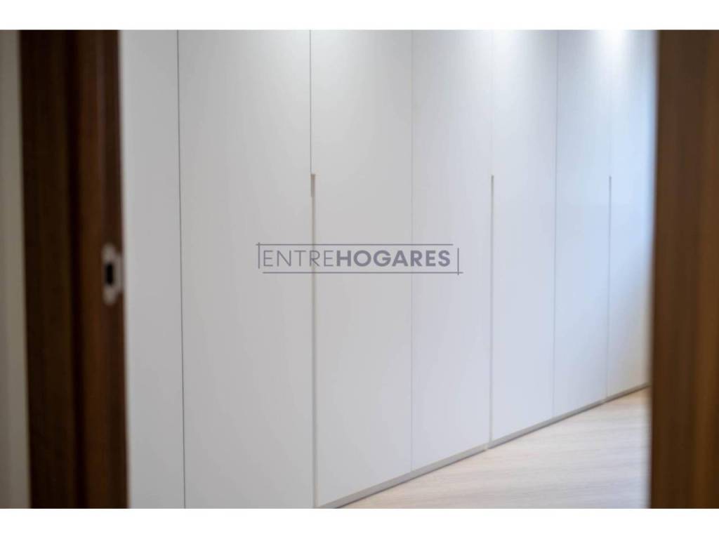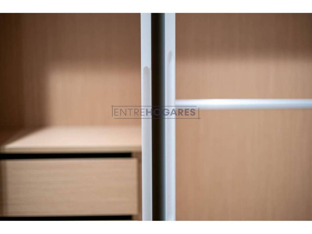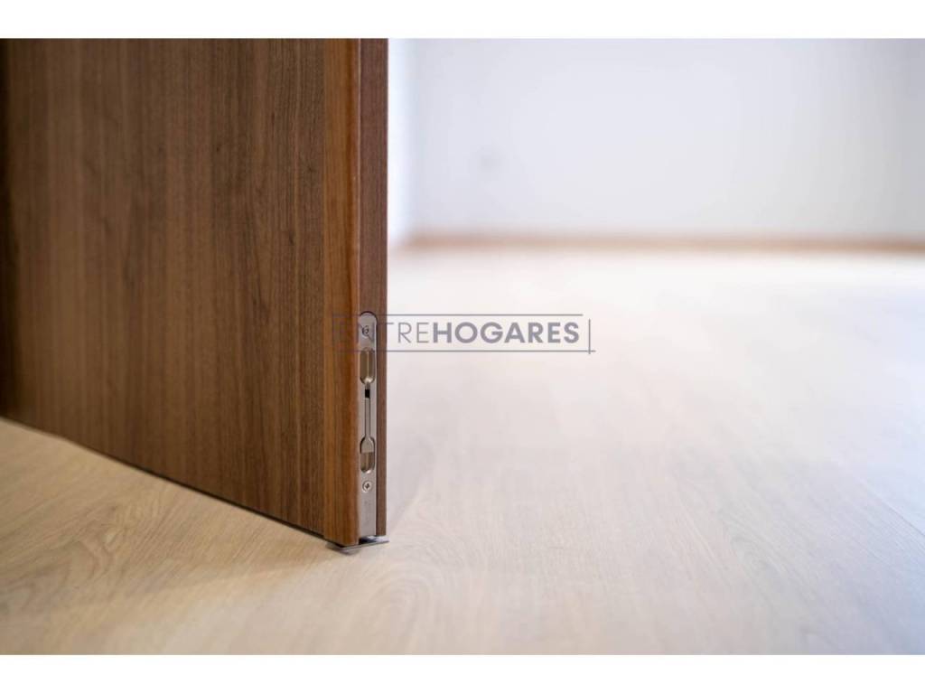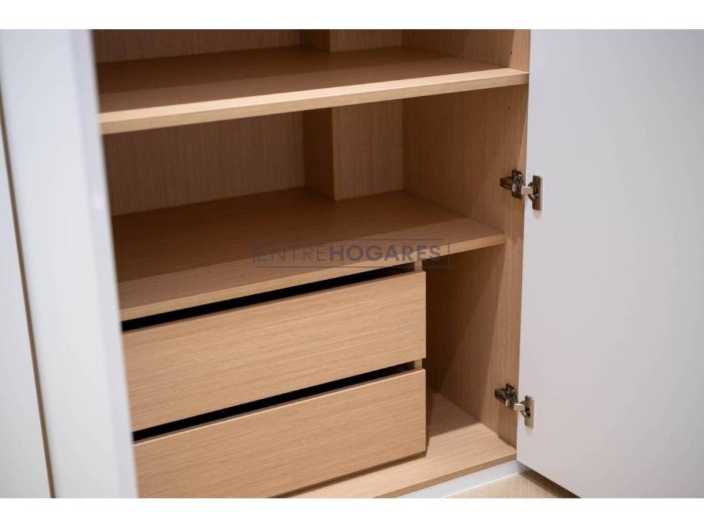● Armarios empotrados con interiores fabricados con revestimiento interior de madera, de roble claro lacada (no melamínicos) y puertas de madera maciza de palma de nogal por toda la vivienda.