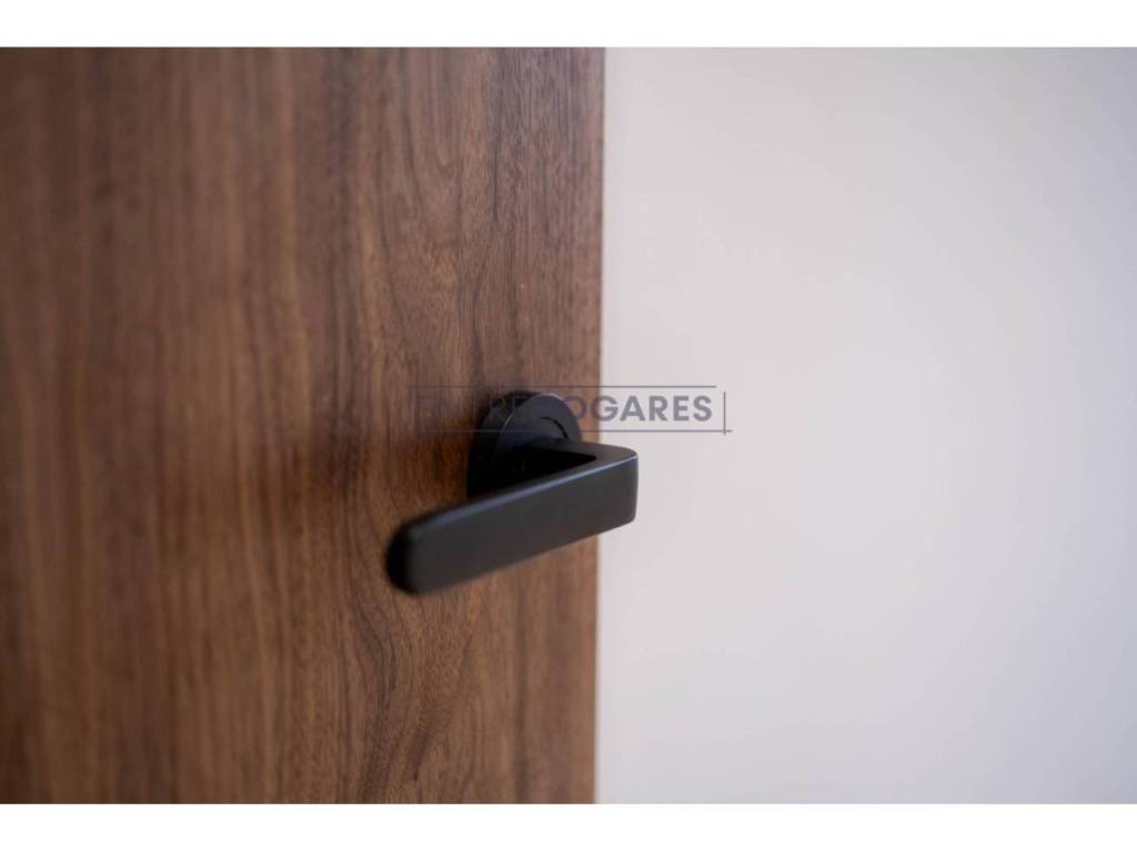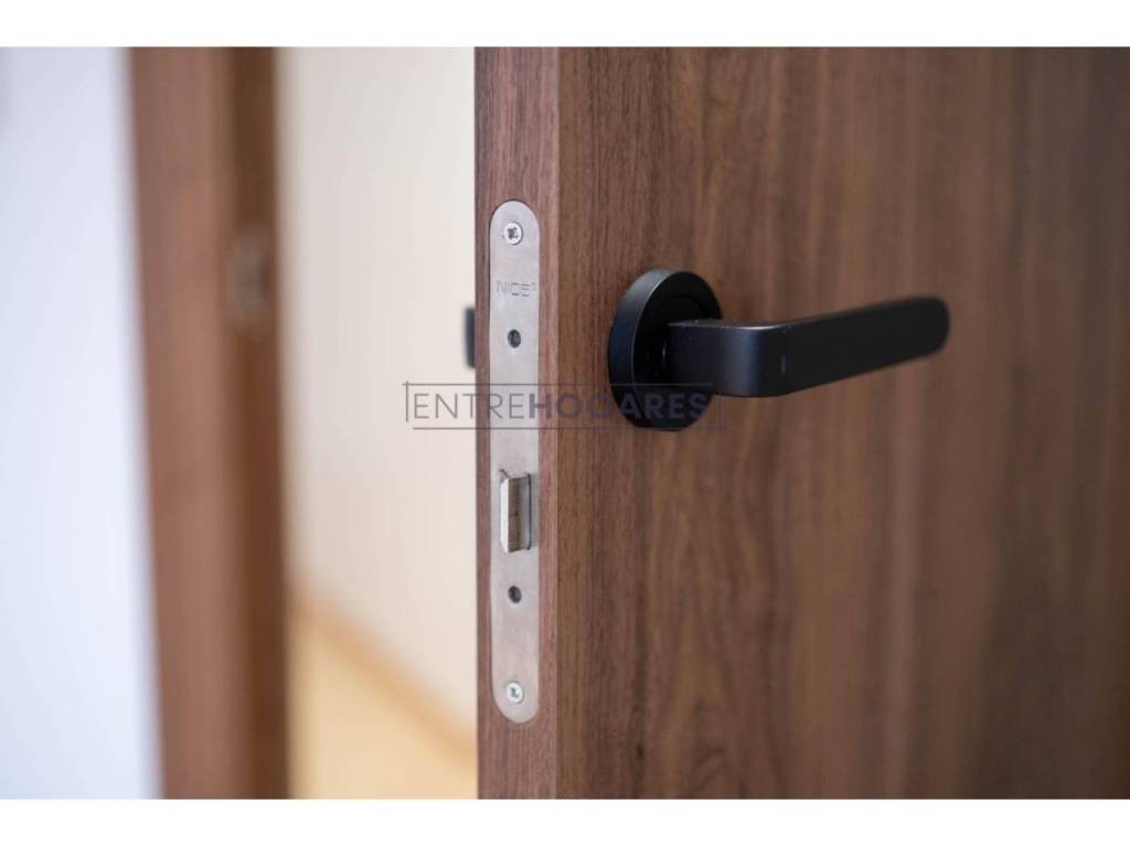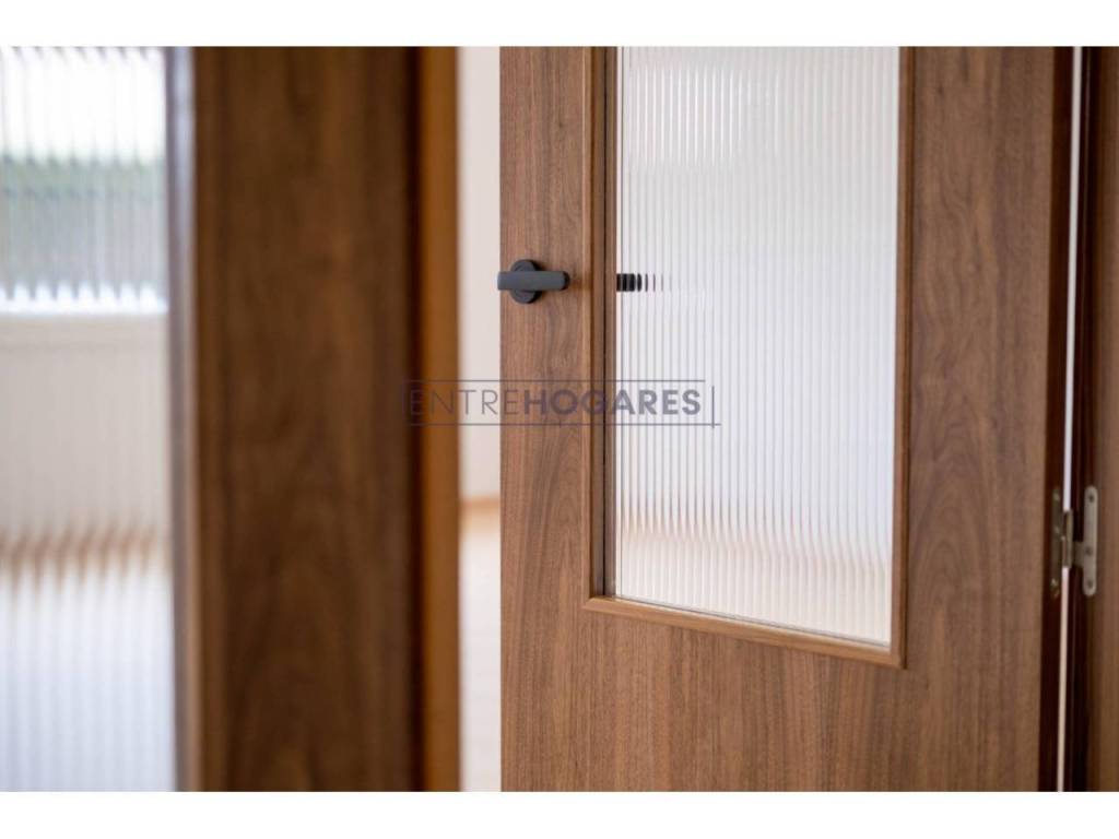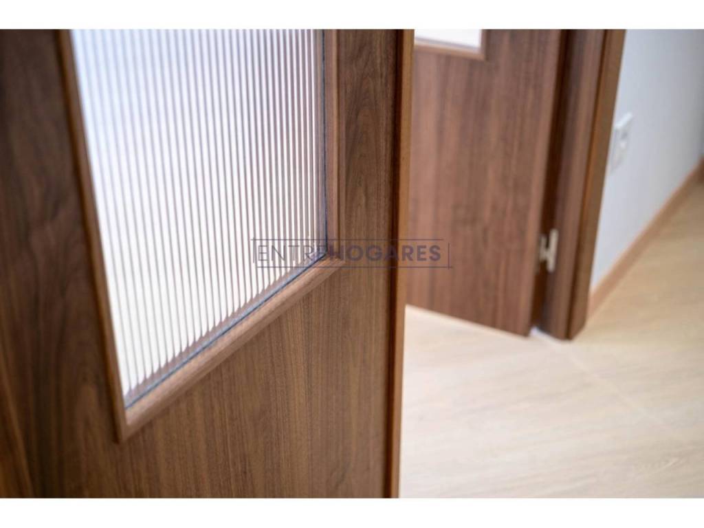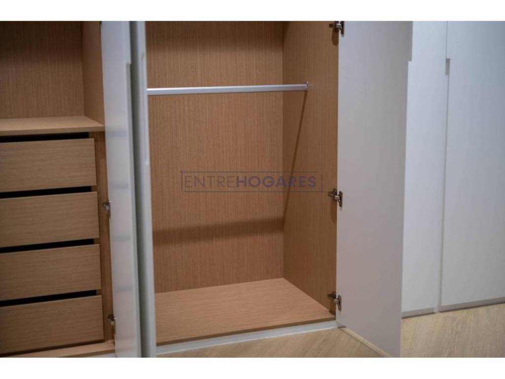 ● Armarios empotrados con interiores fabricados con revestimiento interior de madera, de roble claro lacada (no melamínicos) y puertas de madera maciza de palma de nogal por toda la vivienda.