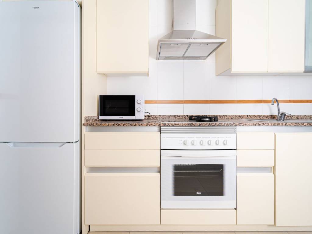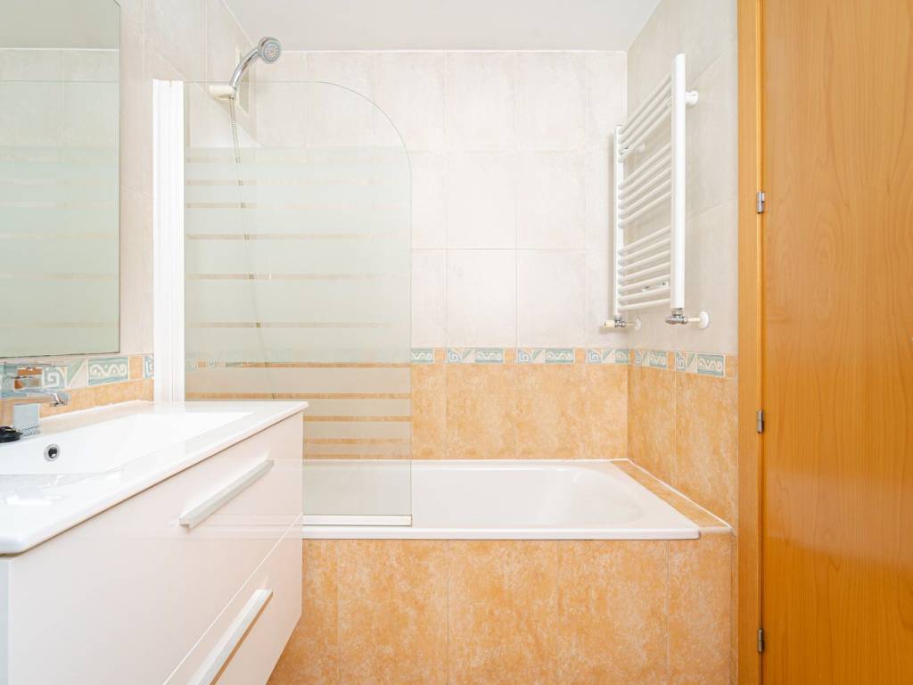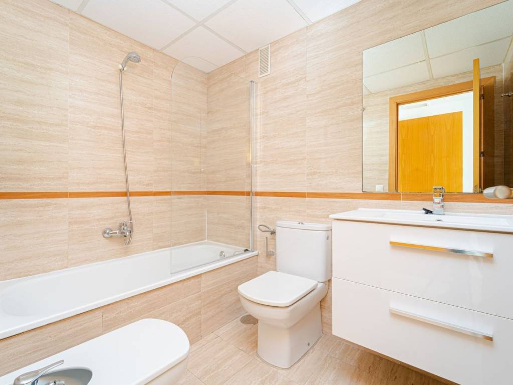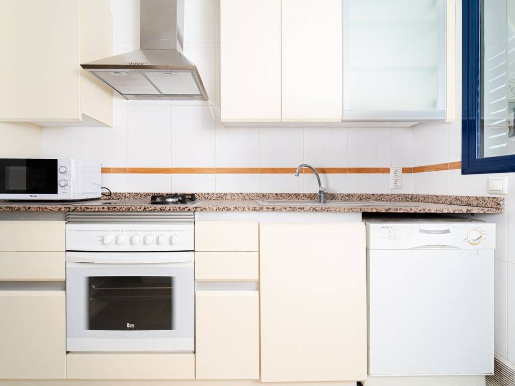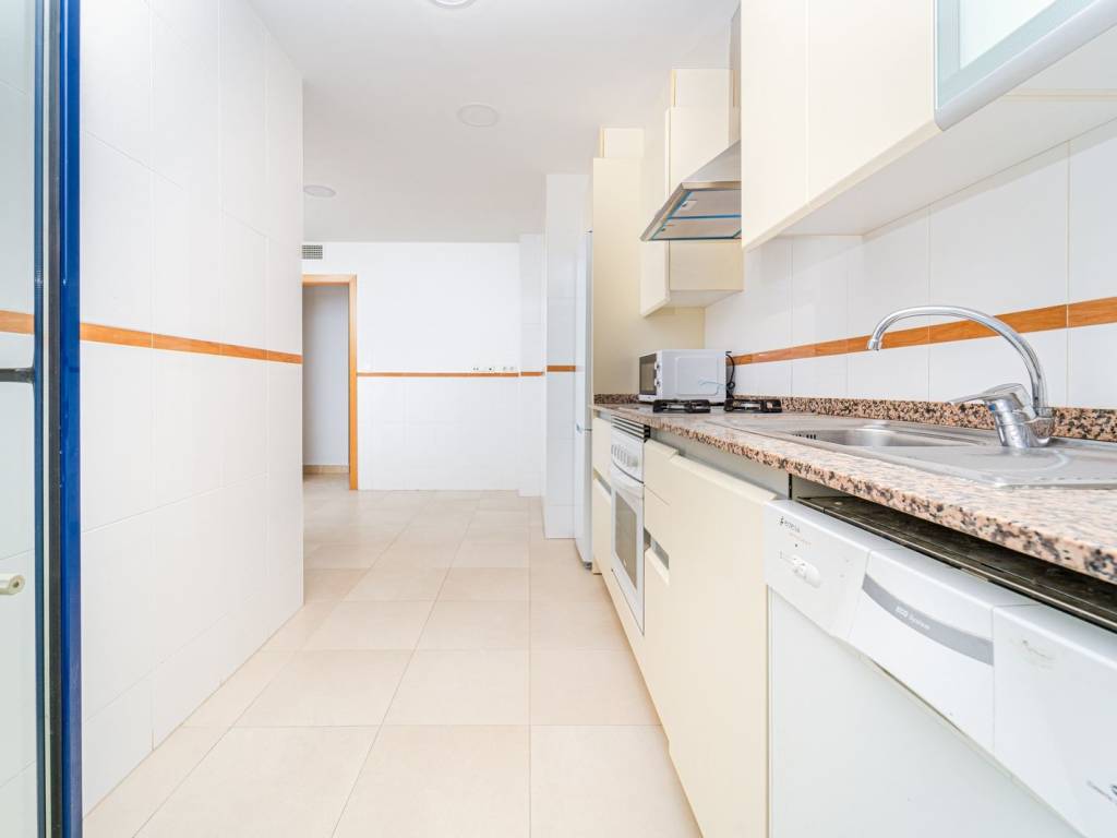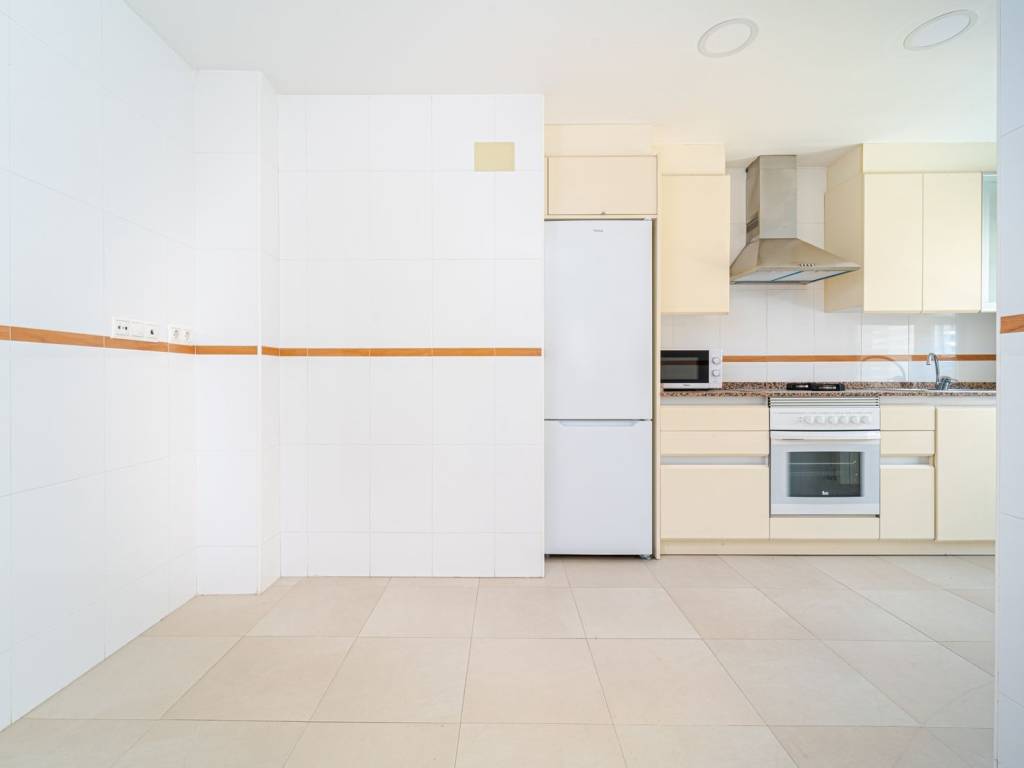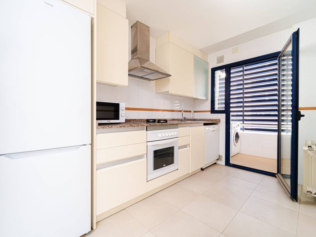 Cocina totalmente amueblada y equipada con electrodomésticos de primeras marcas. Baños con muebles y mamparas. Suelos de gres, puerta blindada y armarios empotrados. Calefacción individual y aire acondicionado.