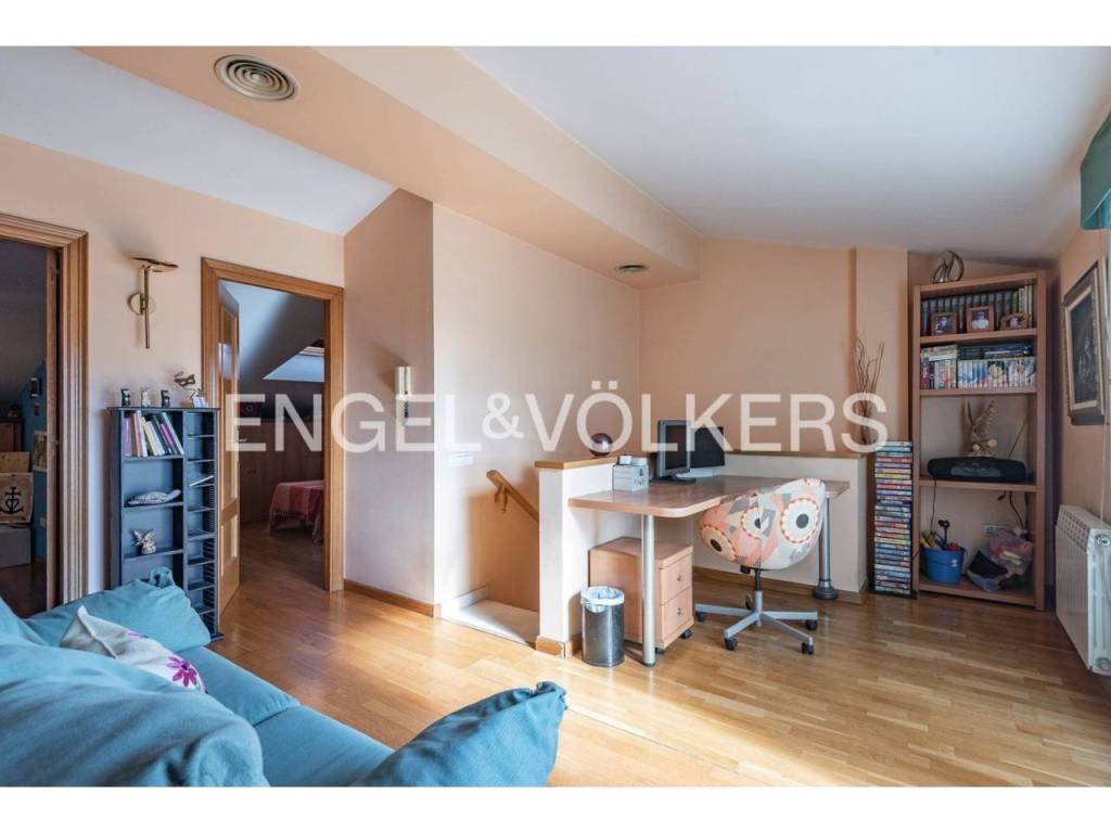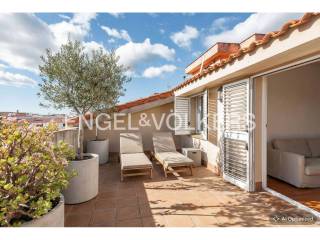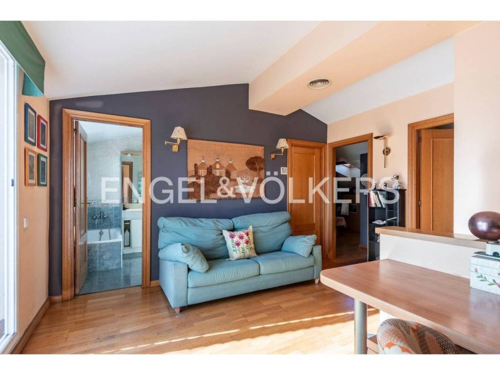Al ingresar, será recibido por un ambiente cálido y lleno de luz gracias a su doble orientación al este y al oeste y a sus tres terrazas. En la primera planta, de 99 m2 de superficie construida, encontramos un amplio salón con salida a un balcón de orientación este, cocina con zona de lavandería y dos dormitorios (originalmente eran 3) uno de los cuales tiene acceso a otro balcón de orientación oeste. También hay dos baños completos, uno de ellos en suite. Los dos balcones suman 12 m2 de superficie construida. En la planta de la buhardilla, de 55 m2 de superficie construida, se sitúan otros dos dormitorios, un baño completo, zona compartida de despacho y una espectacular terraza de unos 27 m2 de superficie construida orientada al este.