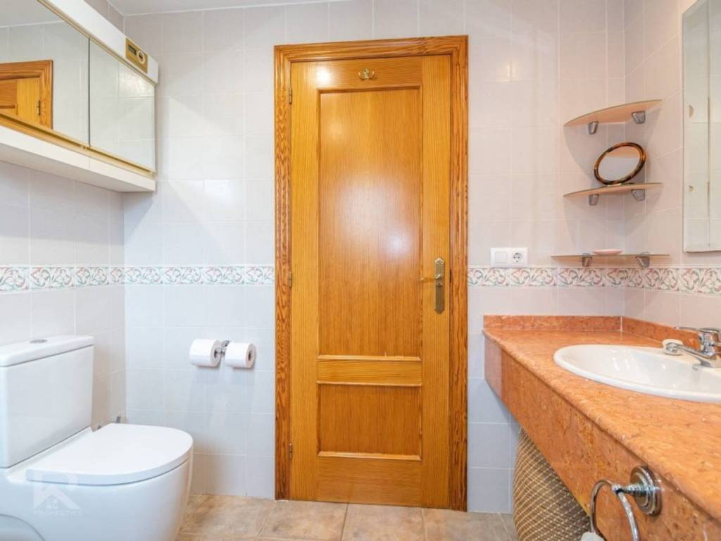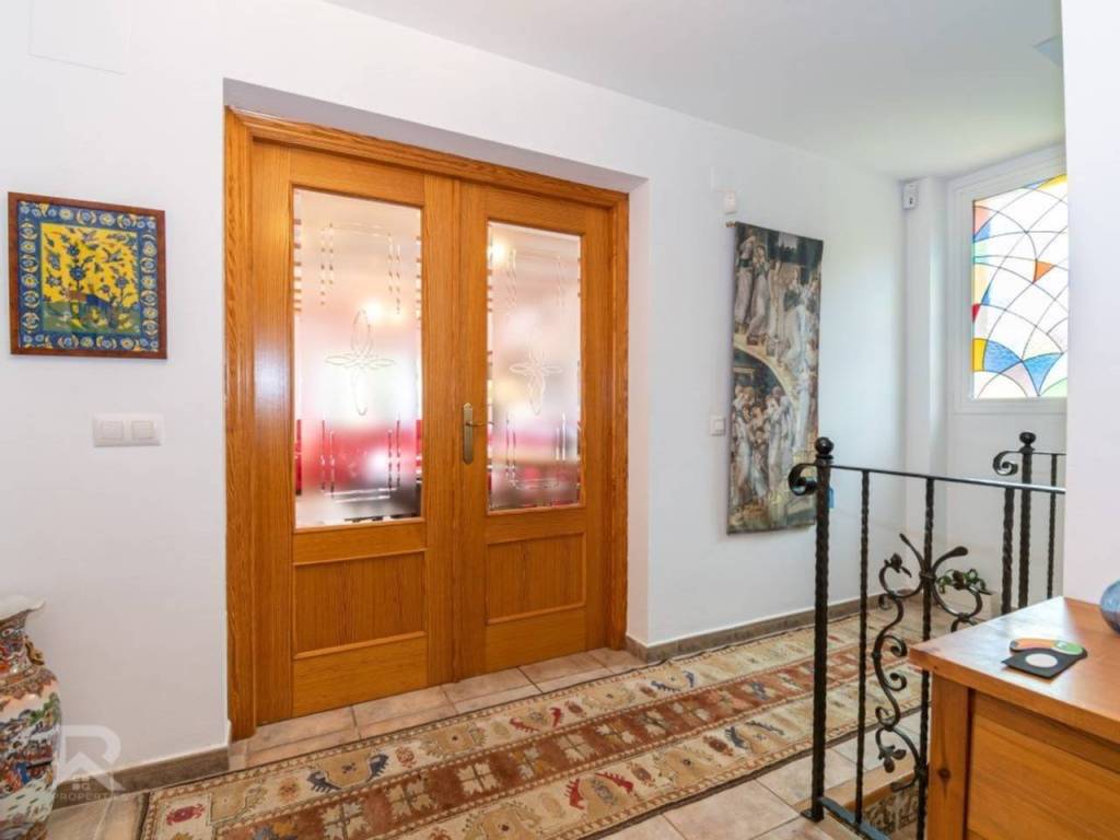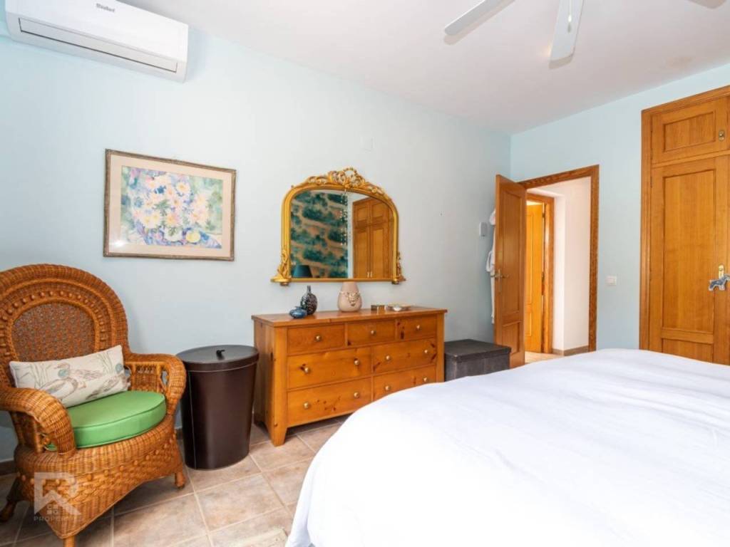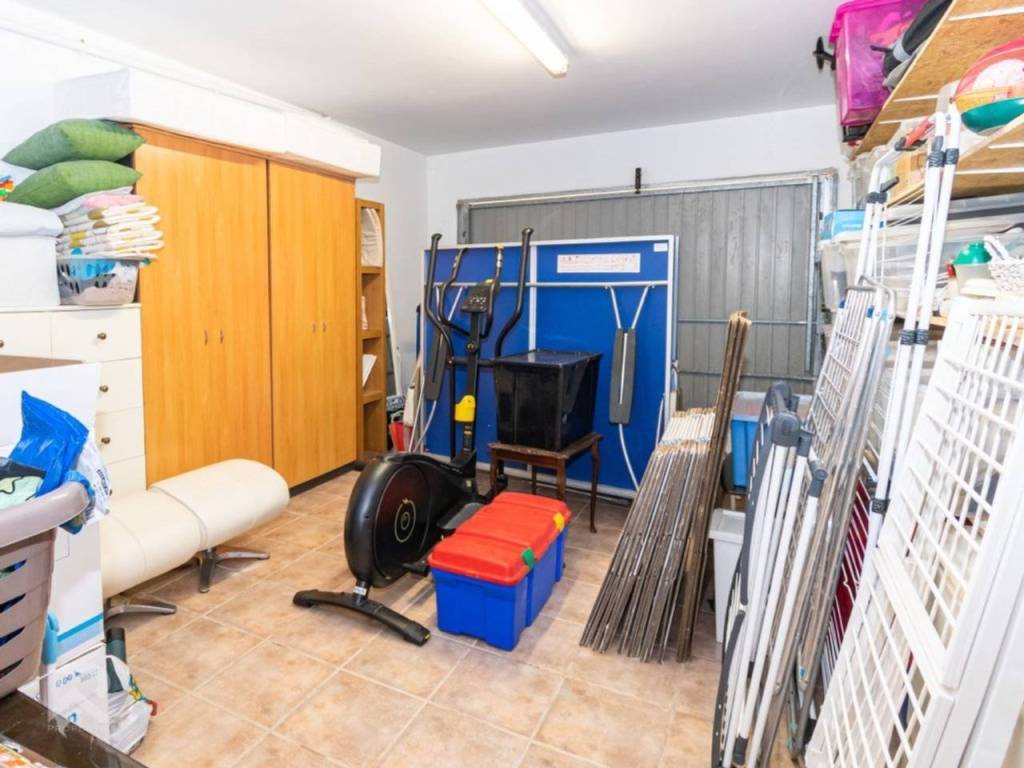 Among its many features: central heating with radiators, air conditioning units, ceiling fans in every bedroom, built-in wardrobes, PVC windows with double glazing, alarm system, security cameras, automatic irrigation, solar panels, and a maintenance area with water softener and pool system. The property is fully connected to the public lighting and sewage network, ensuring modern convenience.