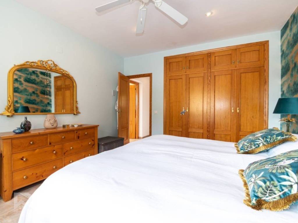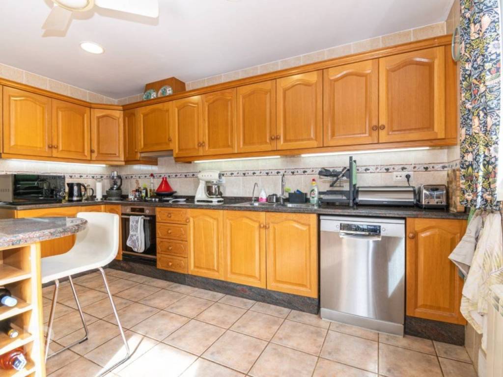 The lower level, with independent exterior access yet connected internally, features a self-contained guest apartment ideal for visitors or as a holiday rental. This inviting space includes a cozy living-dining room with open kitchen and access to the garden and pool through a covered porch, three bedrooms (two doubles and one single), a laundry room with washer and dryer, and two full bathrooms with showers.