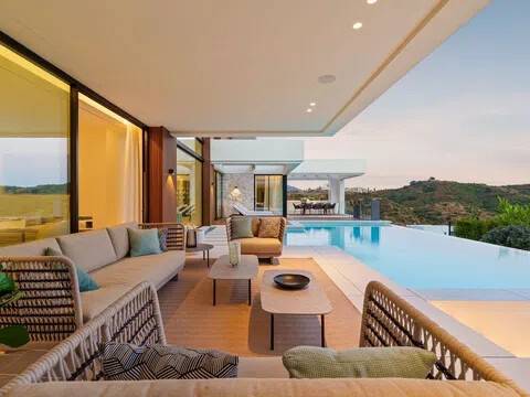 Villa - Chalet, Benahavís, Costa del Sol. 6 Dormitorios, 7 Baños, Construidos 636 m², Terraza 145 m², Jardin/Terreno 1579 m². Posición: Cerca de Golf, Cerca de Ciudad, Urbanización. Orientación: Sur. Estado: Excelente. Climatización: Aire Acondicionado, A/A Caliente, A/A Frio. Vistas: Mar, Montaña, Panorámicas. Caracteristicas: Terraza Cubierta, Armarios Empotrados, Terraza Privada, Gimnasio, Trastero, Lavadero, Baño En-Suite, Doble acristalamiento, Sótano, Fibra óptica. Cocina: Equipada. Jardin: Privado. Aparcamiento: Subterráneo, Garaje. Servicios Públicos: Electricidad, Agua Potable. Categoría: Golf, Casas de vacaciónes, Lujo, Reventa, Contemporáneo.
