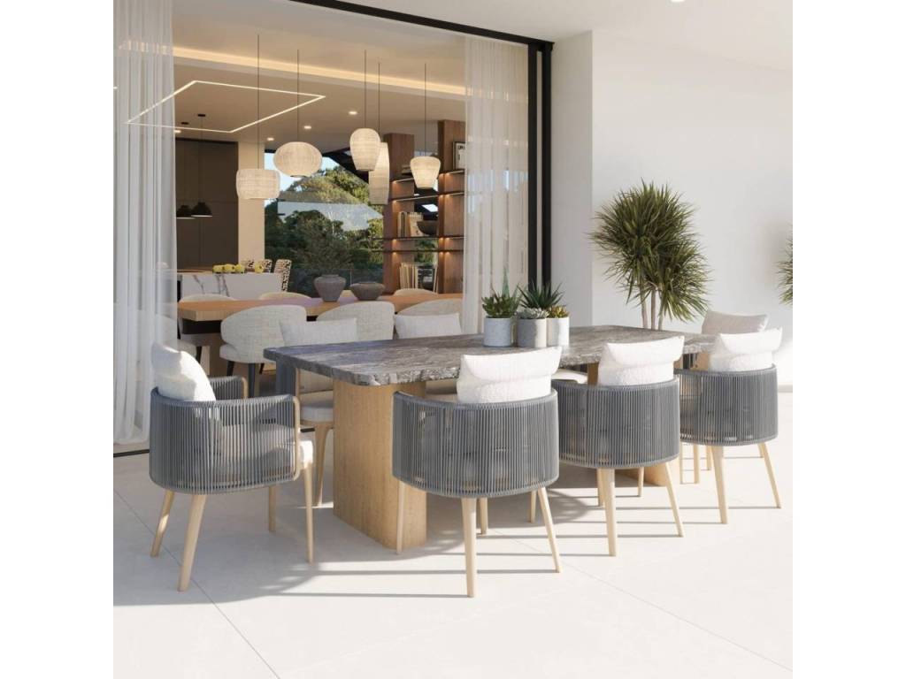 It features five en-suite bedrooms plus a guest toilet, all with excellent natural light and pleasant views. The villa offers generous open-plan living and dining areas that blend seamlessly with a fully fitted designer kitchen equipped with high-quality appliances. The versatile basement provides additional adaptable space and includes a private garage with capacity for 2 cars and 1 carport. On the upper level, a spectacular solarium with jacuzzi and outdoor kitchen creates the perfect setting to relax and enjoy the Mediterranean climate all year round.